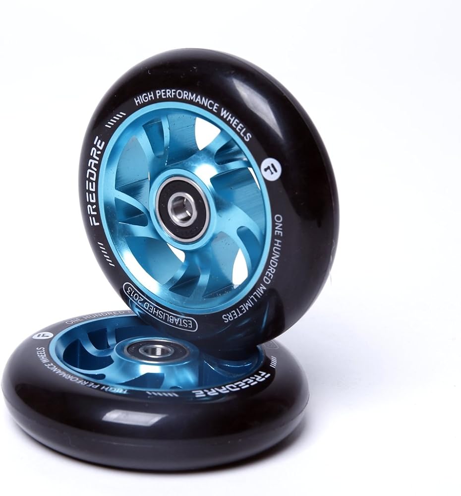 تعتبر عجلات السكوتر الاحترافية هي الأفضل للمتسابق المبتدئ في القيام بالحيل. مادة عجلة من البولي يوريثين مقاس 100 مم ونوى من السبائك توفر معًا قبضة أفضل على التضاريس المسطحة.