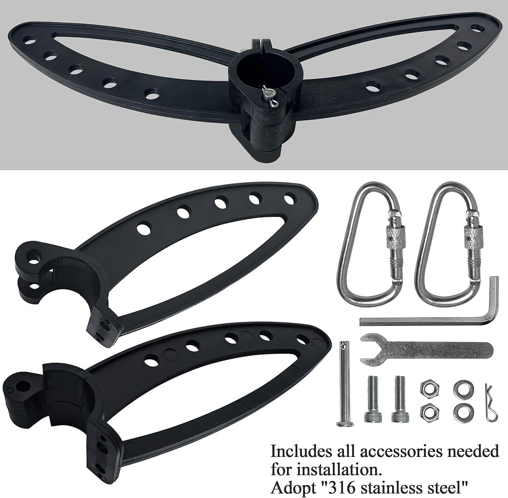 • التصميم: ذراع توجيه محرك كاياك مع 5 فتحات تعديل ممكنة، يمكنك ضبط الوضع وفقًا للاحتياجات وتثبيته بحبل. (ملاحظة: يشتمل على مشبكين للتوصيل، ولكن لا يشتمل على الحبال)
