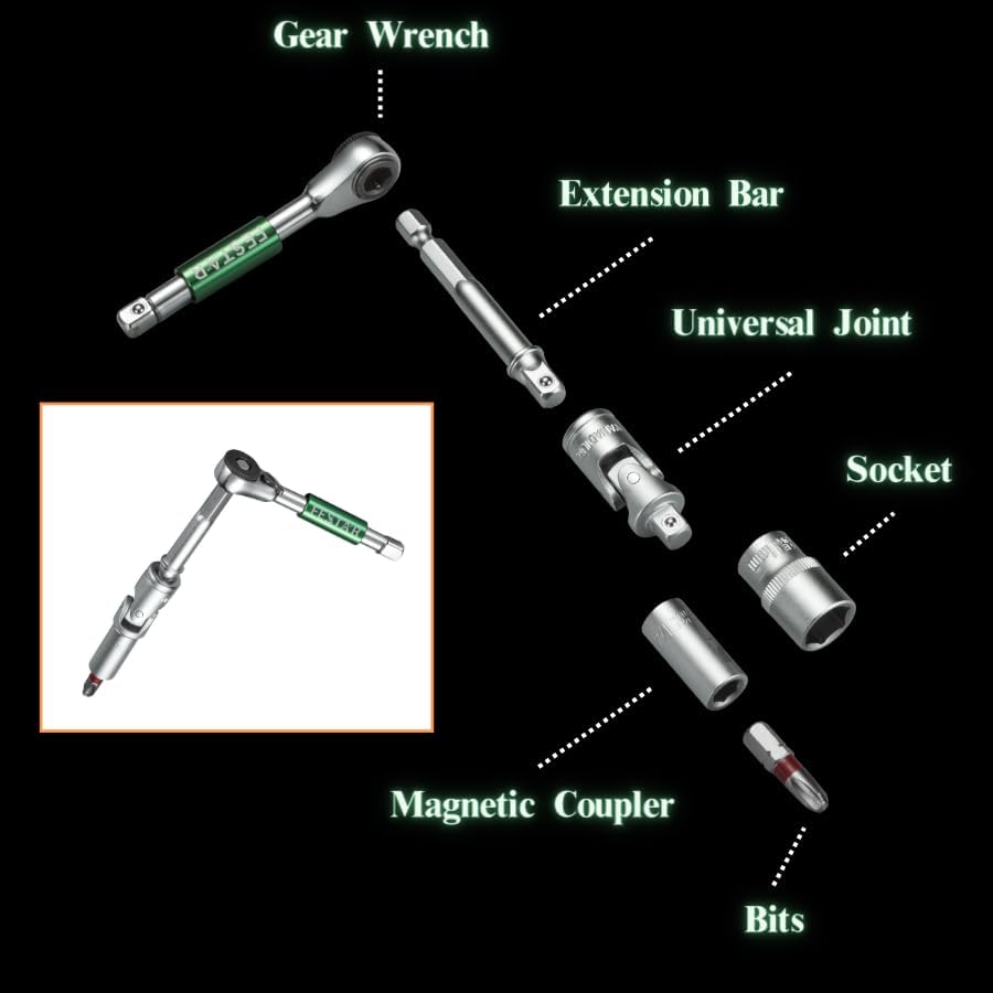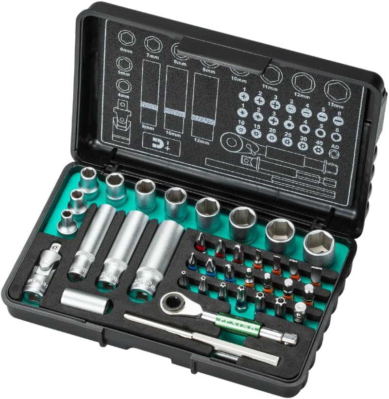 - ✅ مجموعة مقابس ولقم مكونة من 39 قطعة من Festar متضمنة: مفتاح ربط بسقاطة قابل للعكس 1/4 بوصة، وصلة مغناطيسية، محول، مفصل عالمي، محول × 65 مم، تمديد المقبس، مجموعة مقابس 1/4 بوصة (4 مم، 5 مم، 6 مم، 7 مم، 8 مم، 9 مم، 10 مم، 11 مم، 12 مم، 13 مم)، مقبس عميق (8 مم، 10 مم، 12 مم)، فيليبس (1، 2، 3)، سداسي (3، 4، 5، 6)، نجمة تامبر (10، 15، 20، 25، 30، 40)، مشقوق (3، 4، 5، 6)، بوزيدريف (1، 2، 3)