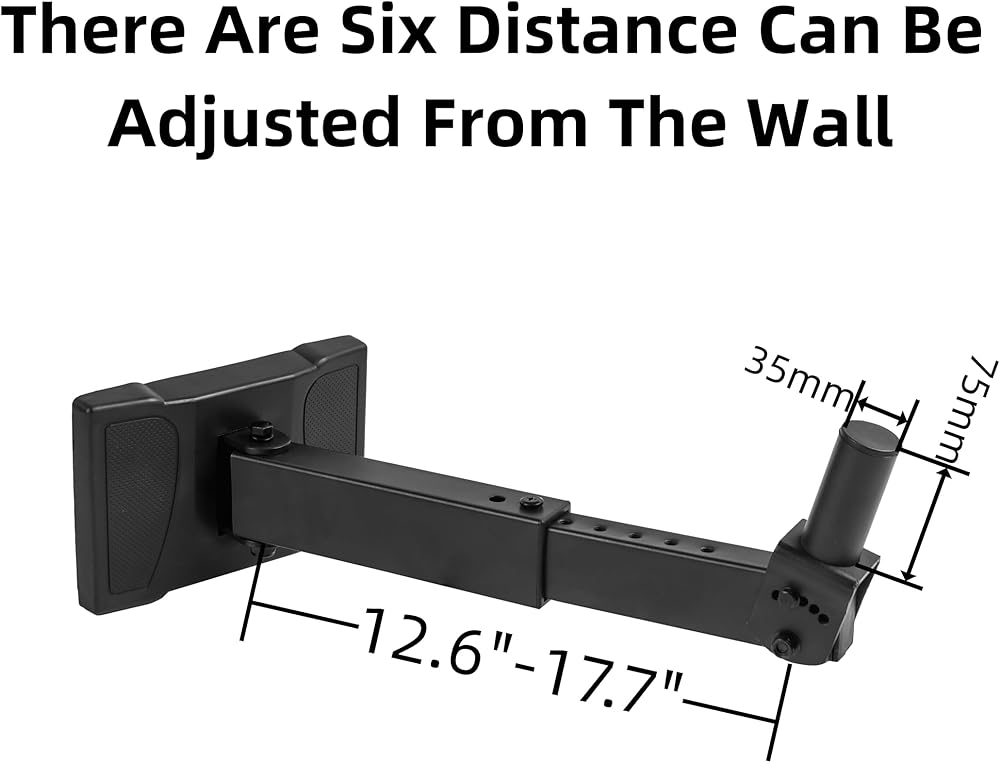 الطول قابل للتعديل - مع إعدادات الطول القابلة للتعديل، يمكن تخصيص حامل مكبر الصوت PA هذا ليناسب مكانك أو متطلبات الحدث، مما يسمح لك بتحقيق إسقاط صوتي مثالي. مسافات قابلة للتعديل من الجدار إلى عمود مكبر الصوت: 12.6 بوصة - 17.7 بوصة ( يمكن تعديل مسافة 6 سرعات).