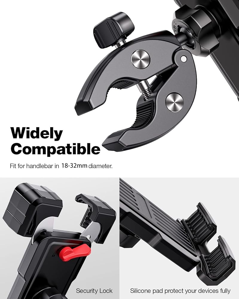 • متوافق على نطاق واسع: يناسب حامل هاتف الدراجة/الدراجة النارية الهواتف المحمولة مقاس 4.7 بوصة - 6.8 بوصة، مثل iPhone 14/ 14 Plus/14 Pro/14 Pro Max، iPhone 13/13 Pro Max/13 Pro/13 Mini، iPhone 12/ 12 Pro Max/12 Pro/12 Mini, iPhone 11/11 Pro Max/11 Pro, X,Samsung Galaxy S23+ S22+ S21+ S20 S10+ S10 S9+ S8 S8+ S7, Note 9 8 7 7 6، وغيرها من الهواتف الذكية.دراجة نارية، دراجة نارية، عربة الأطفال، عربة التسوق، سكوتر كهربائي، دراجة داخلية، جهاز المشي يمكن أن يستخدم المقود بقطر 15 - 40 مم.