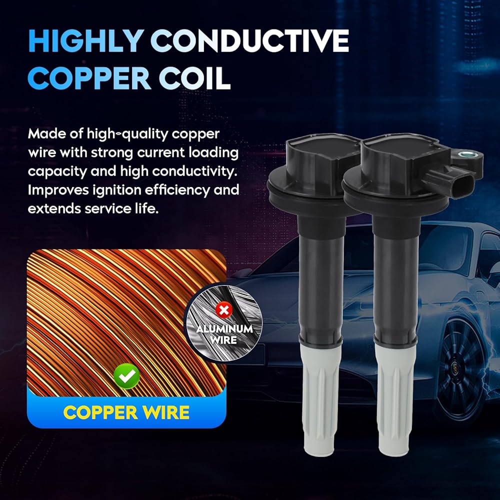 🚗 Performance Boost: The exterior of our ignition coils are made of epoxy resin and PPT plastic to prevent the ignition coils from melting due to engine overheating, and the interior of our ignition coils are made of highly conductive copper coils for faster ignition.