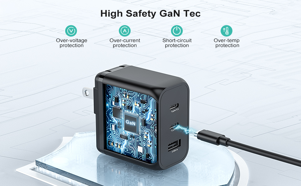 【آمن وموثوق: شاحن USB بقدرة 65 وات هذا معتمد من ETL ويعتمد حماية ذكية لمنع الجهد الزائد والتيار الزائد ودرجة الحرارة الزائدة وقصر الدائرة. يوفر التخصيص الذكي للطاقة الطاقة المثلى ويضمن دائمًا سلامتك وأمان أجهزتك.
