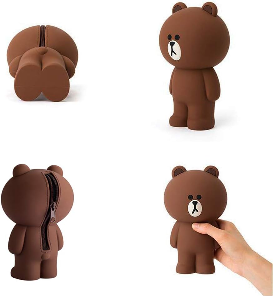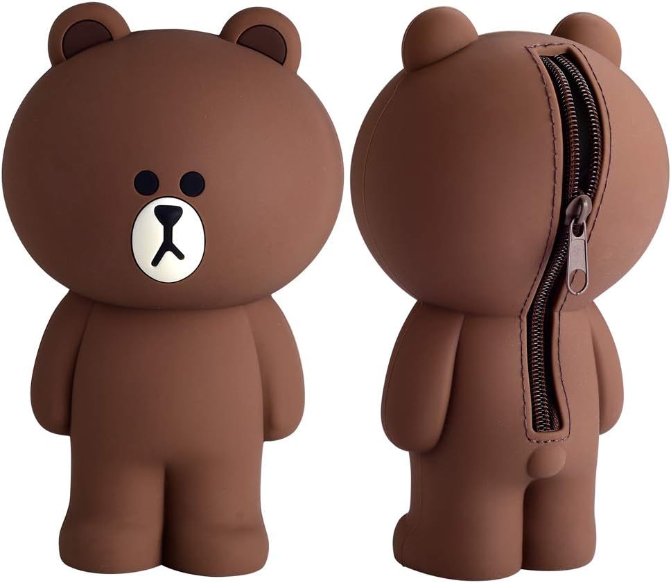 XuanAn Cute Lovely 3D Brown Bear Pencil Box Silcon Girls Boys Storage Bag Students Stationery Case Gifts
