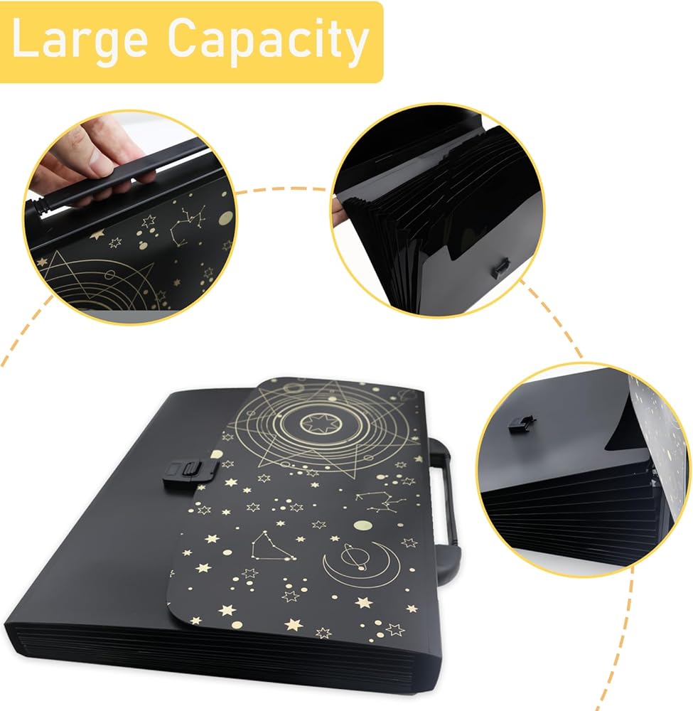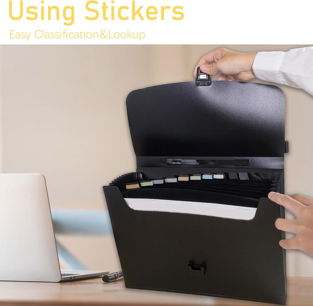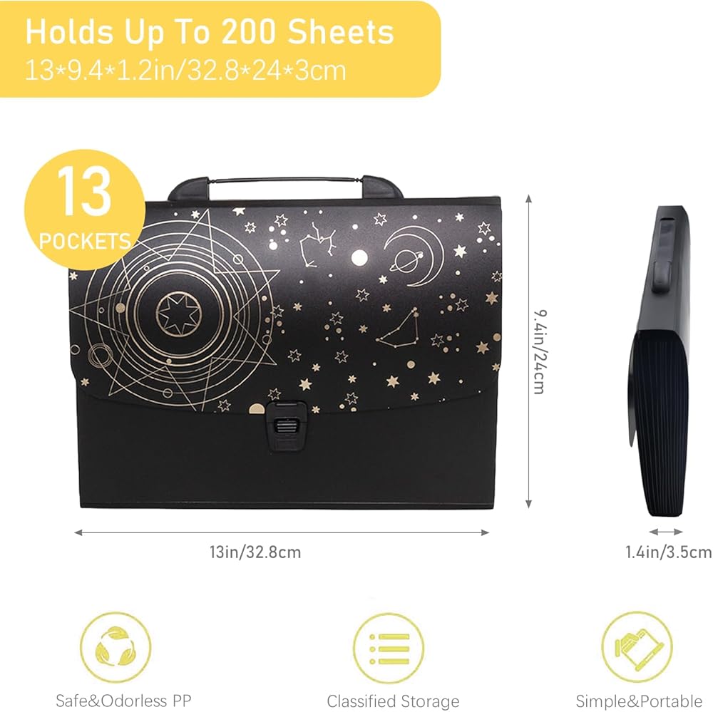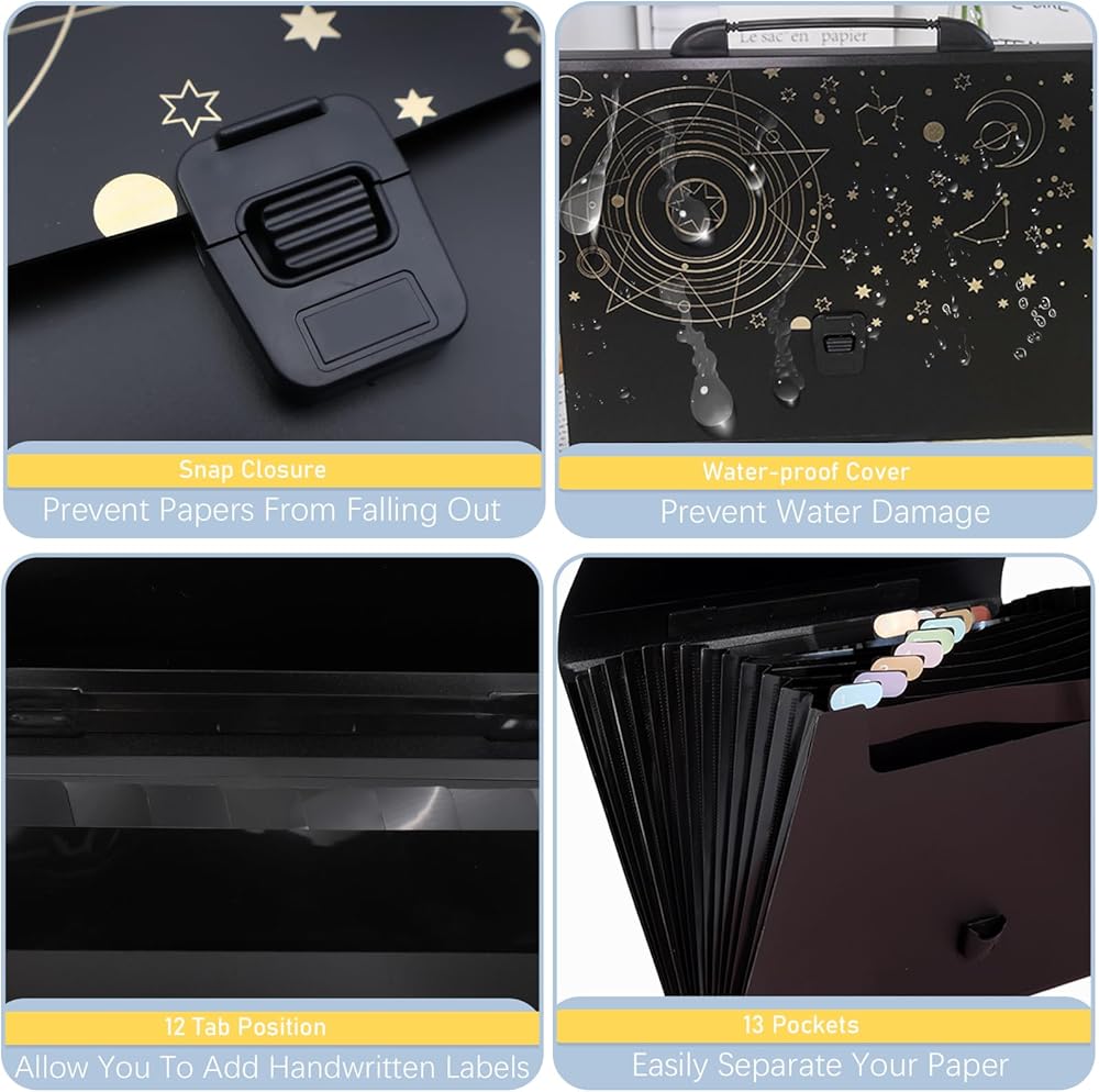 Expansive Pockets: Our durable expanding file folder features 13 pockets, accommodating both letter size and A4 documents, making it ideal for organizing papers, files, scripts, notebooks, vouchers, coupons, receipts, bills, and more.