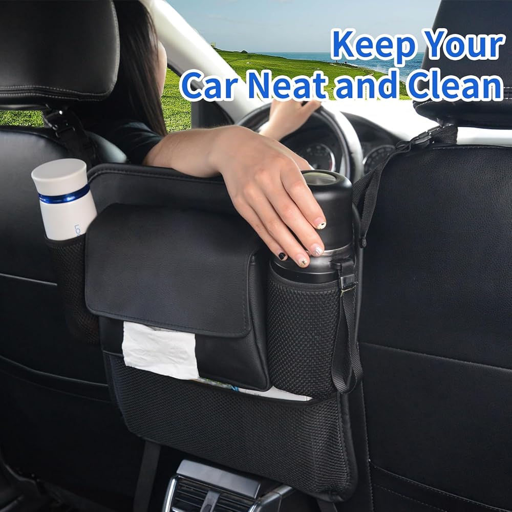 - 🔥 خامة عالية الجودة - حامل مناديل السيارة من جلد البولي يوريثان، حديث وناعم ومريح ومتين.