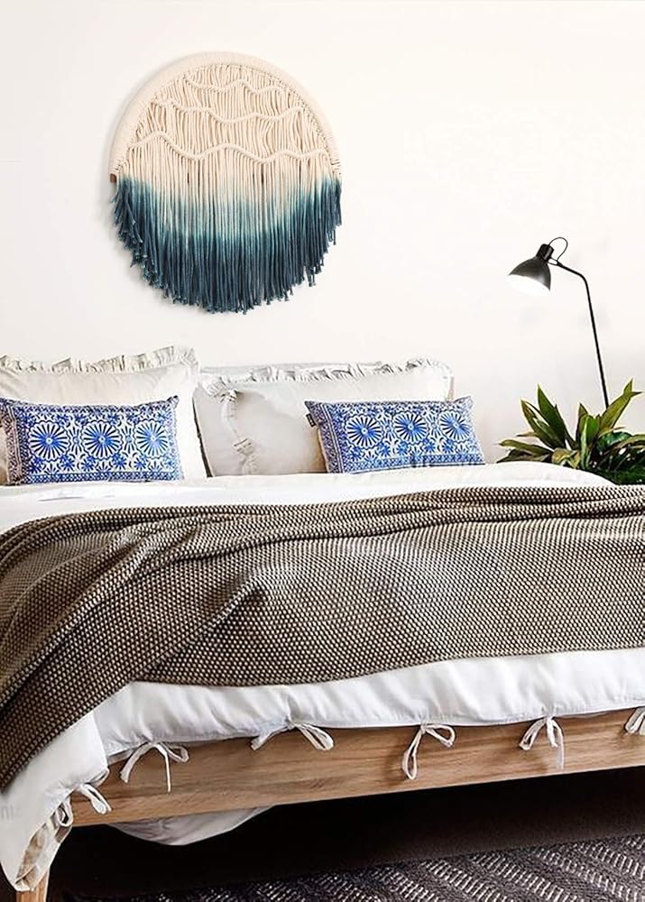 المقاس: تعليق حائط مكرامية باللون الأزرق على شكل دائرة الأبعاد: 23.6 بوصة