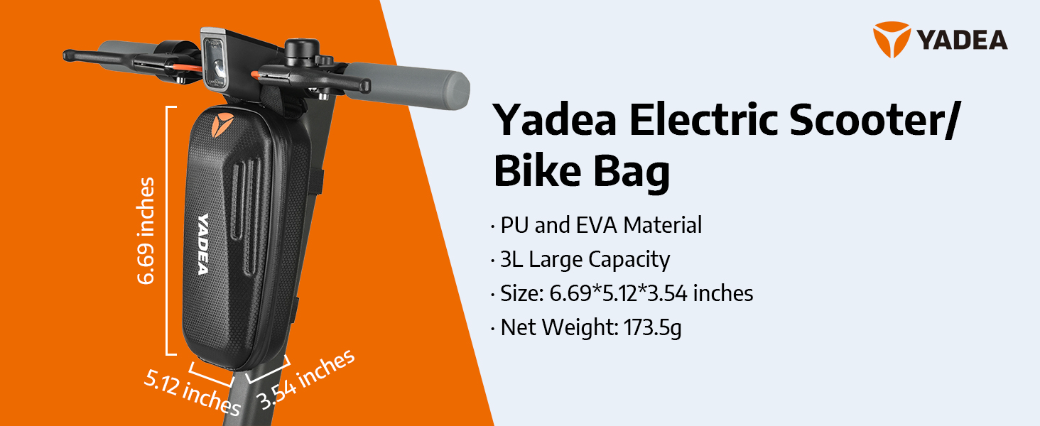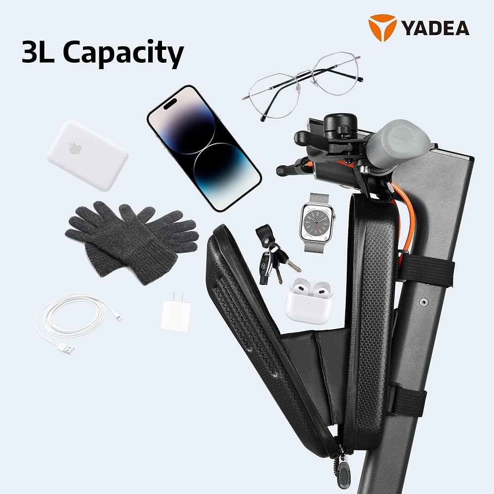 حقيبة سكوتر مقاومة للماء من YADEA، معلقة أمامية، حقيبة مقود متينة من مادة EVA للسكوتر الكهربائي/الدراجة الكهربائية/الدراجة الهوائية/الدراجة النارية لحمل أدوات الشاحن، سعة كبيرة 3 لتر