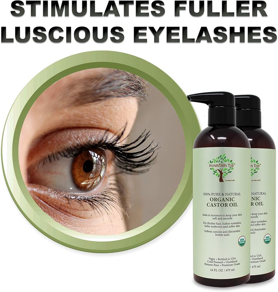 رموش فاخرة: يحتوي زيت الخروع النقي الخاص بنا على الأحماض الدهنية الأساسية والبروتينات الضرورية اللازمة لتحفيز الدورة الدموية لتعزيز وتعزيز مظهر الحواجب والرموش السميكة والكثيفة.