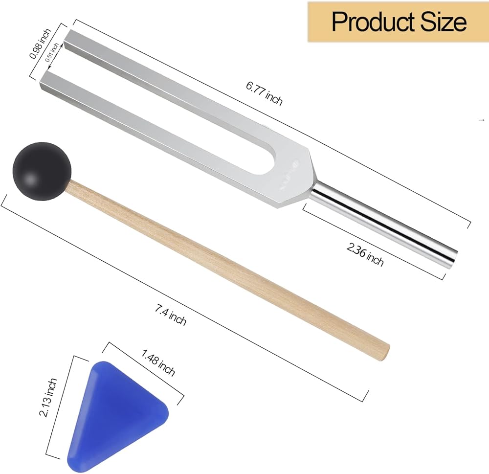 ✅【مادة عالية الجودة】هذه الشوكة الرنانة بتردد 528 هرتز مصنوعة من سبيكة عالية الجودة، مع مقبض طويل جدًا من الألومنيوم الناعم لسهولة الإمساك بها. هيكل من سبائك الألومنيوم المقاوم للتآكل لفترة طويلة جدًا ومتانة.