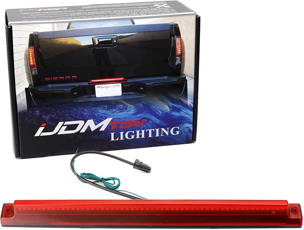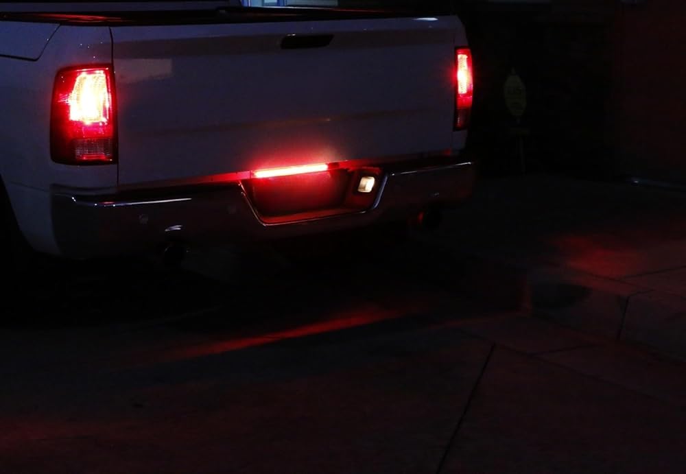 يشتمل على (1) شريط إضاءة LED كامل أسفل الباب الخلفي/شريط إضاءة خلفي مع غطاء عدسة دخان داكن، مدعوم بـ 54 قطعة من صمامات SMD LED حمراء ساطعة للغاية والتي تكون أكثر سطوعًا بمقدار 3 مرات من لمبة الباب الخلفي فقط من مخزون OEM