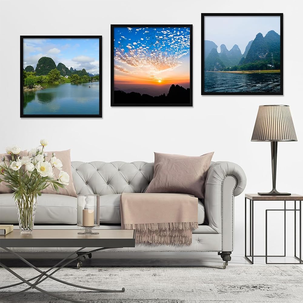 إطارات صور مربعة مقاس 12 × 12 بوصة، متوافقة مع مقاس 30 × 30 سم بدون حصيرة، لعرض الفنون أو الصور أو الملصقات، إطار أسود مع حماية من الأكريليك ومجموعة تعليق، عبوة من قطعة واحدة