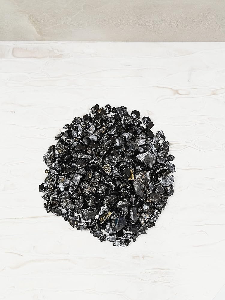 The elite shungite is always used in its raw shape, so the stone sizes and shapes can be different. The weight of one nugget will be from 1 to 5 gr, weight of 1 lot is 100 gr.