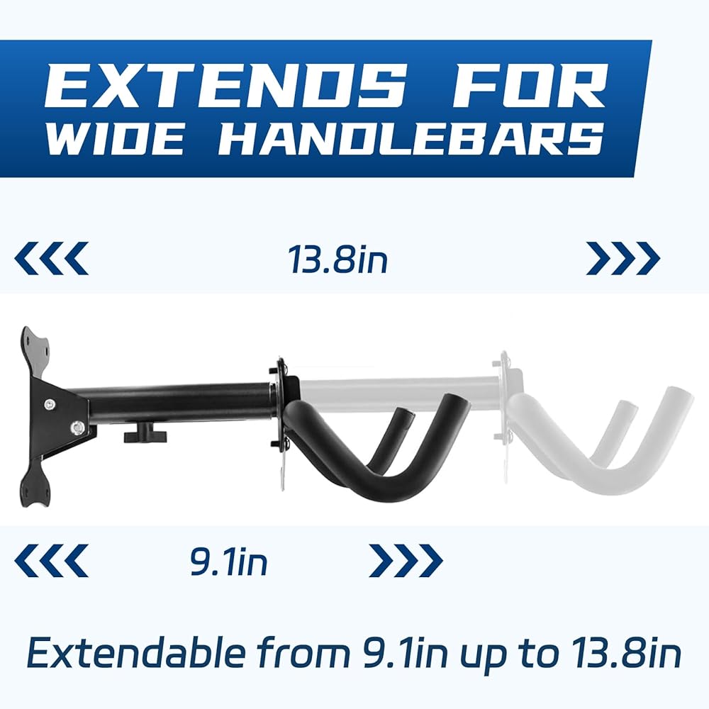 【أذرع قابلة للطي من أجل الراحة】تسمح الأذرع القابلة للطي لشماعة الدراجة الخاصة بنا بسهولة التخزين عند عدم الاستخدام. ما عليك سوى طيها لأسفل لتقليل المساحة المشغولة والحفاظ على منطقتك نظيفة ومرتبة.