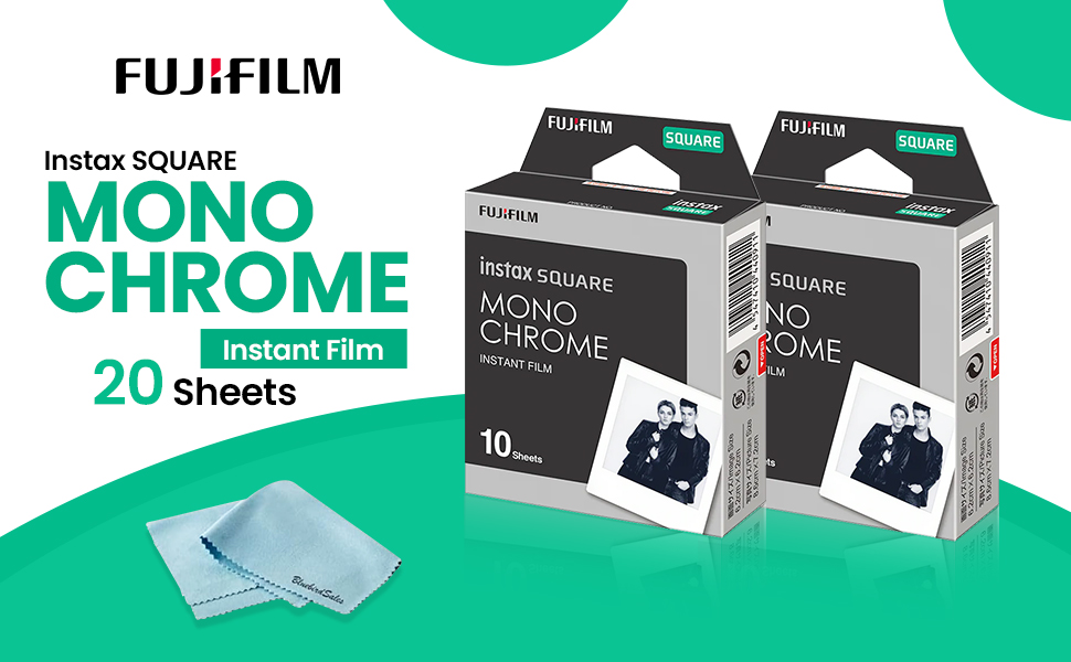 20 Sheets per Pack: This pack includes 20 sheets of Fujifilm Instax Square Monochrome instant film, each measuring 54 x 86 mm.