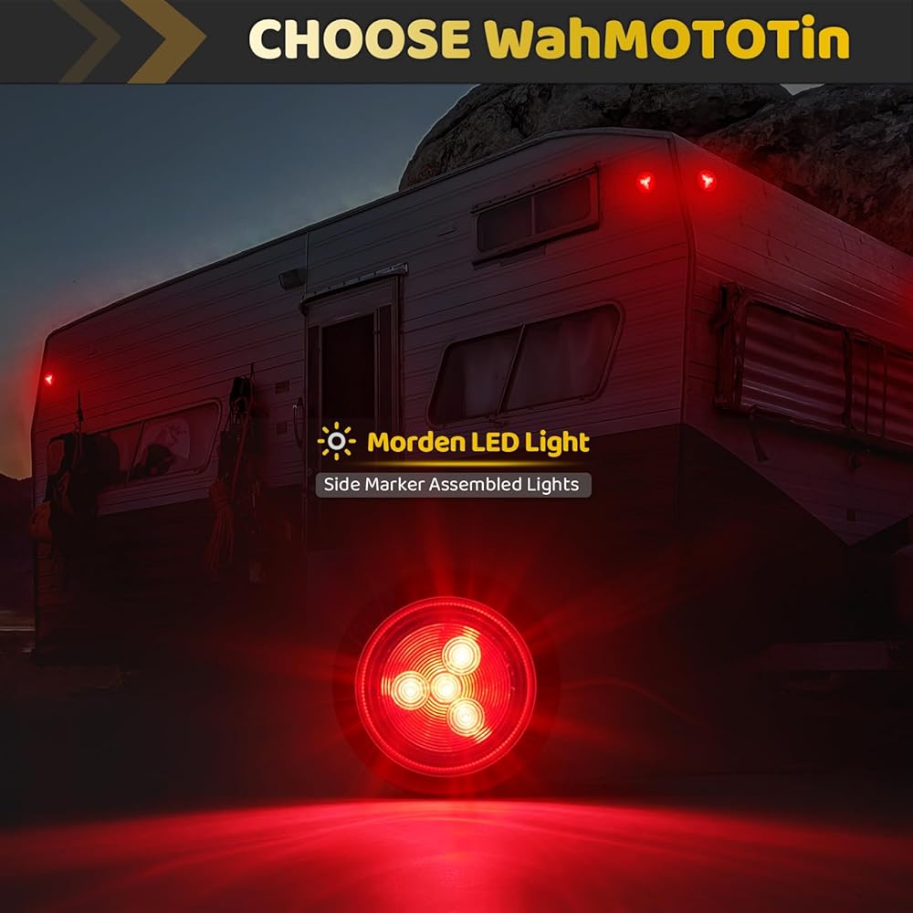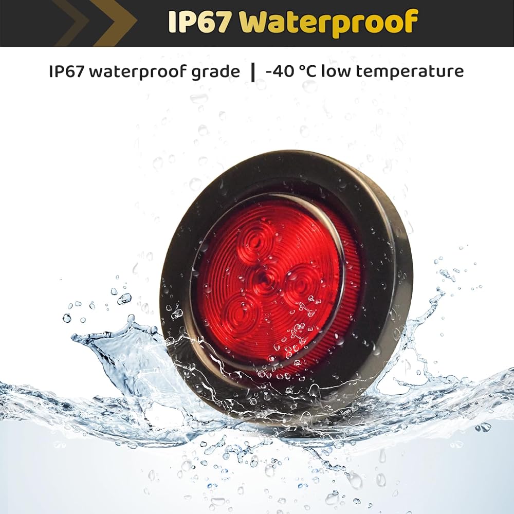 تشتمل العبوة على قطعتين من مجموعة مصابيح LED للمقطورة/الشاحنة مقاس 2 بوصة مع 4 مصابيح LED حمراء، ومصباح تحديد جانبي للعدسة الحمراء مع سلكين.
