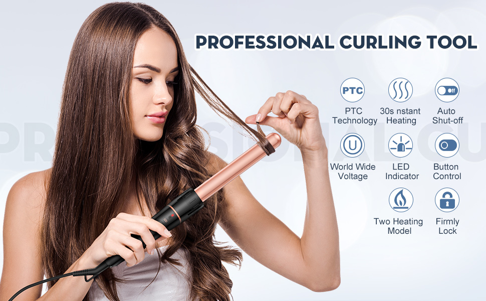 • لجميع أنواع الشعر: درجة حرارة قابلة للتعديل 300 درجة فهرنهايت - 410 درجة فهرنهايت تجعل من السهل اختيار درجة الحرارة المناسبة لشعرك. تعتمد مجموعة عصا التجعيد على تقنية التسخين بي تي سي لخلق تجعيد الشعر الأكثر لمعانًا مع حماية الشعر من التلف. ويتم إيقاف تشغيل أداة تجعيد العصا تلقائيًا بعد 60 دقيقة من الاستخدام.
