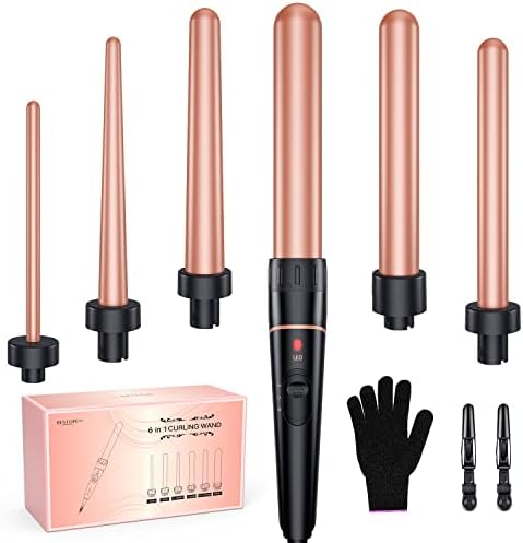 مجموعة عصا تمويج الشعر الاسطوانية الطويلة بيستوب برو 6 في 1 مع اسطوانة سيراميك للشعر الطويل/المتوسط 0.35-1.25 انش قابلة للتبديل، جهد مزدوج، تتضمن قفاز ومشابك
