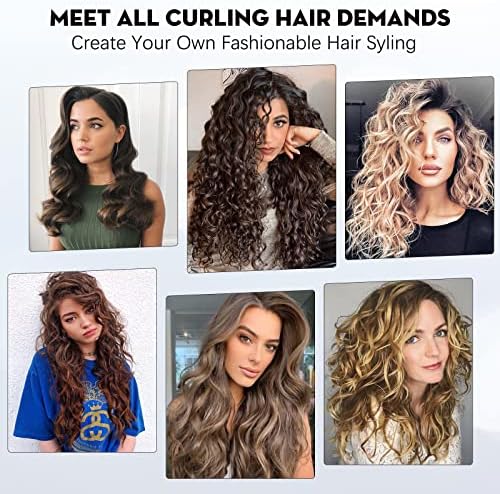 مجموعة مكواة تمويج الشعر، مكواة تمويج الشعر الاحترافية القابلة للتبديل من السيراميك الكبير والصغير والرفيع، اسطوانة طويلة 1 انش، مكواة تمويج الشعر، أدوات تجعيد الشعر الطويلة، أدوات تصفيف الشعر القصير، هدايا للنساء
