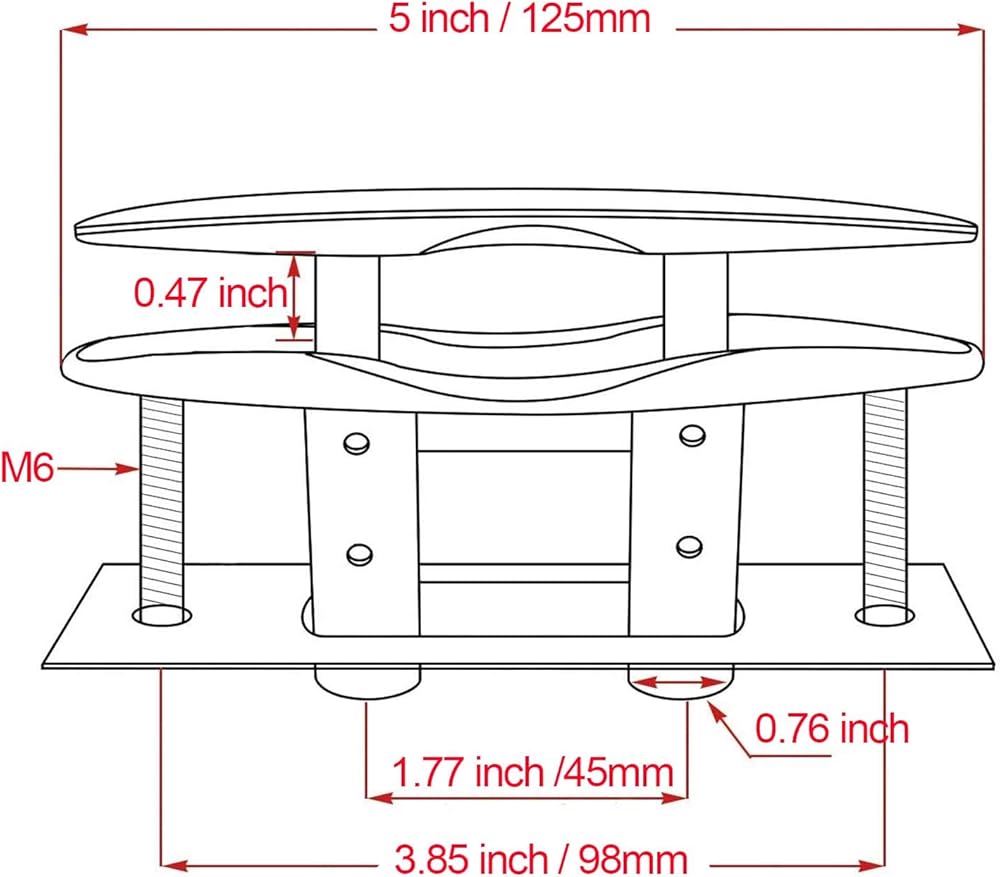Pull Up Cleat Size: length of all: 125mm / 5 inch ,weight: 0.75 LB / 340g ,M6 bolt (Please see the left picture for detailed dimensions)
