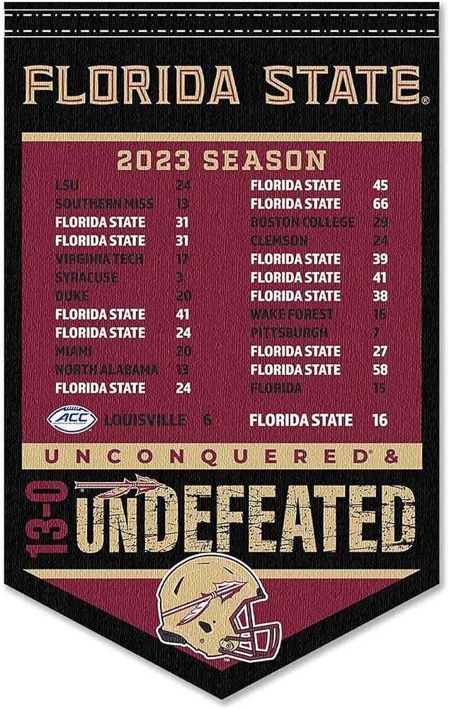 ولاية فلوريدا FSU Noles 13-0 غير مهزوم 2023 موسم راية
