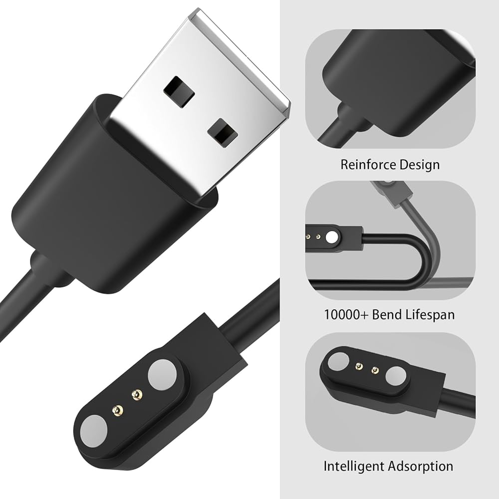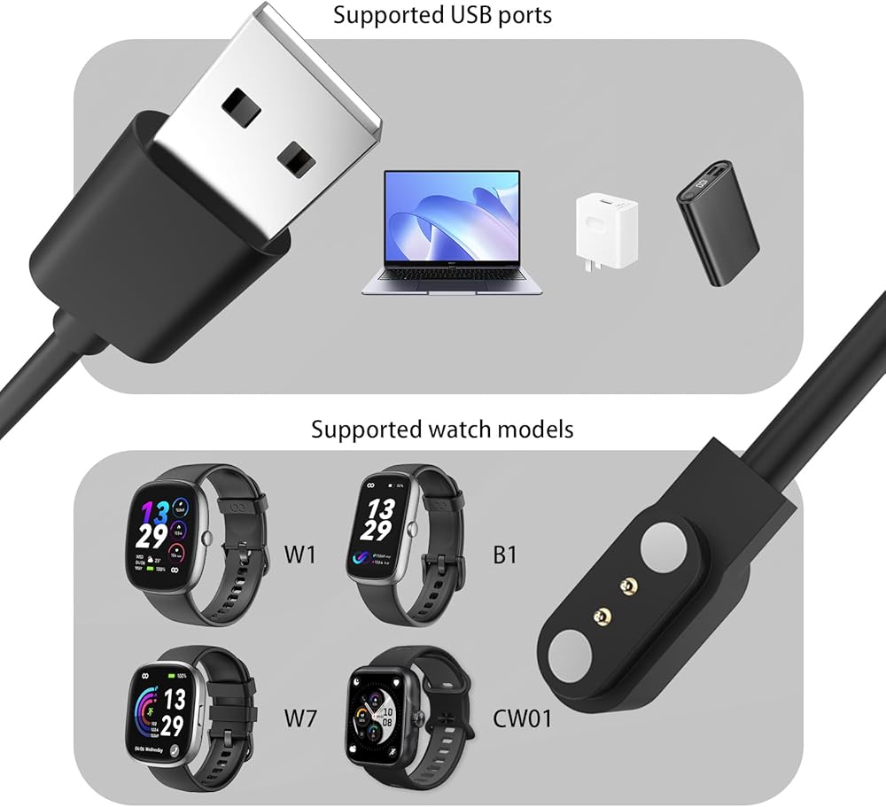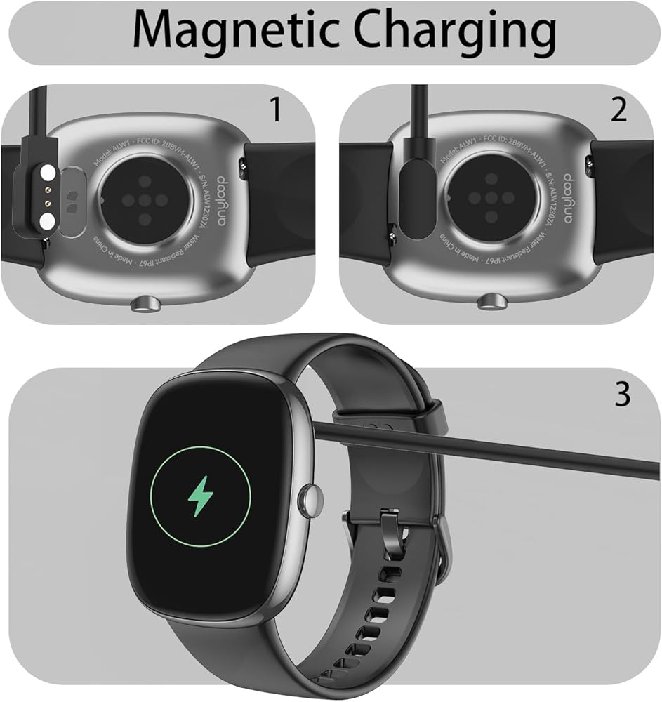 Magenetic Charging: Magnetic charging ensures a tight connection and helps align the smartwatch with the charger, ensuring reliable, no-looseness charging and increasing the efficiency and speed of the charger.