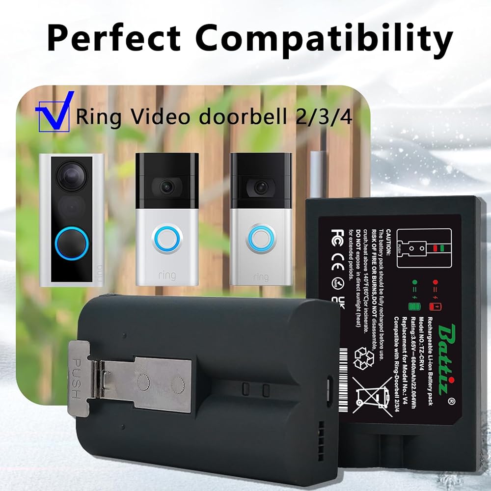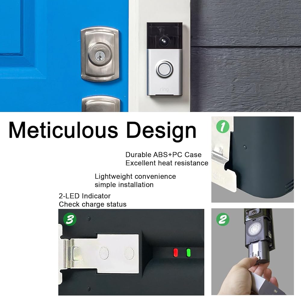 🔔【Convenient Charging】: : Compatible with Ring Doorbell Battery Built-in charger port allows for easy charging with a micro USB cable. Alternatively, use a dual charger to charge two batteries simultaneously.As easy as the original battery release, very easy to install and remove.After receiving the battery, please charge it before use (if the battery is low, the camera will not work).