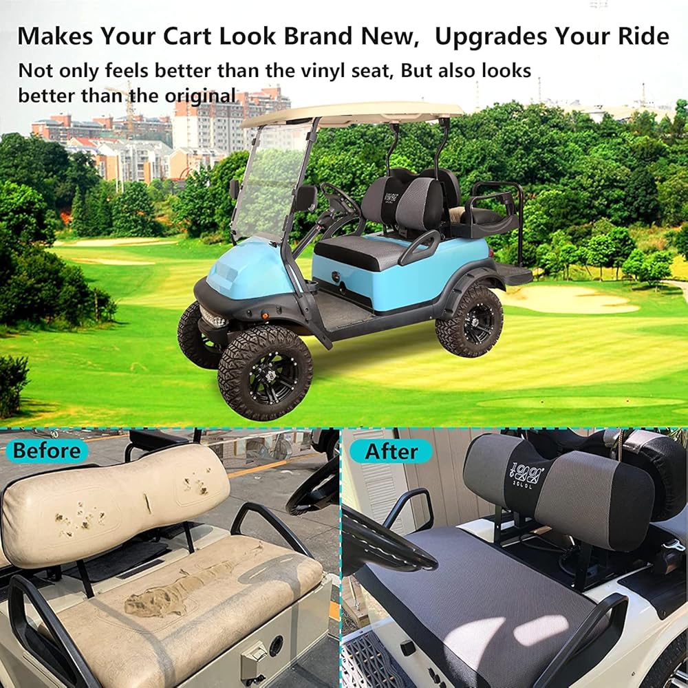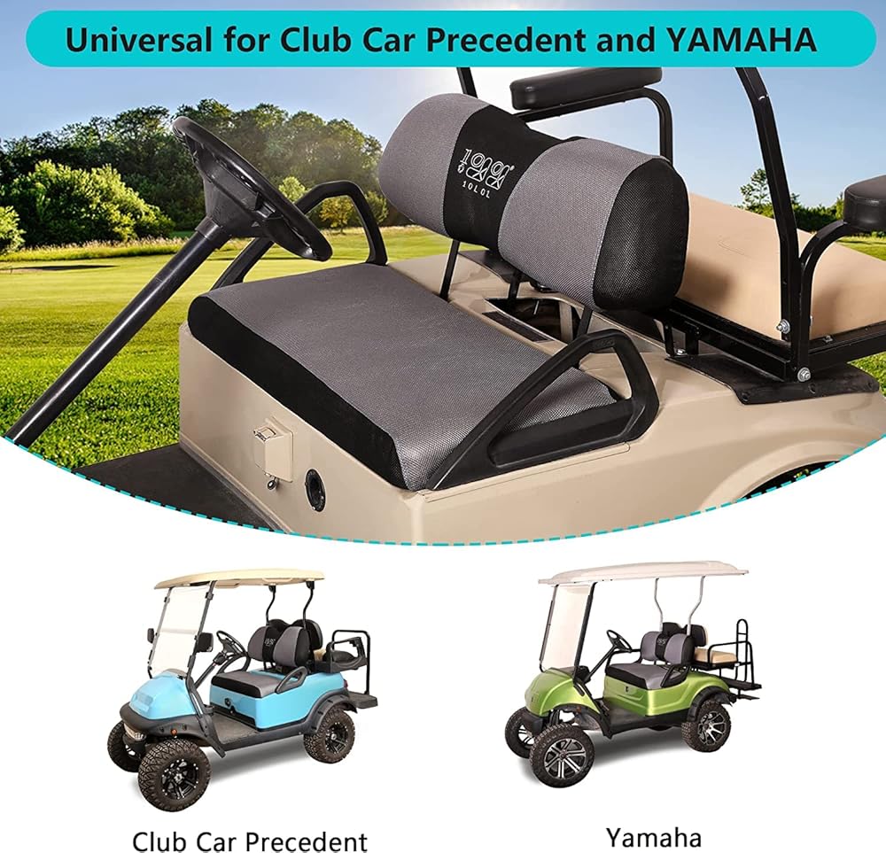 مجموعة أغطية مقاعد عربة الجولف، من أجل وسادة المقعد الأمامي الأصلية لسيارة Yamaha Club Precedent، مادة قماش مسامية تبقي باردة في الصيف، لا حاجة لاستخدام أظافر البندقية - أسود ورمادي
