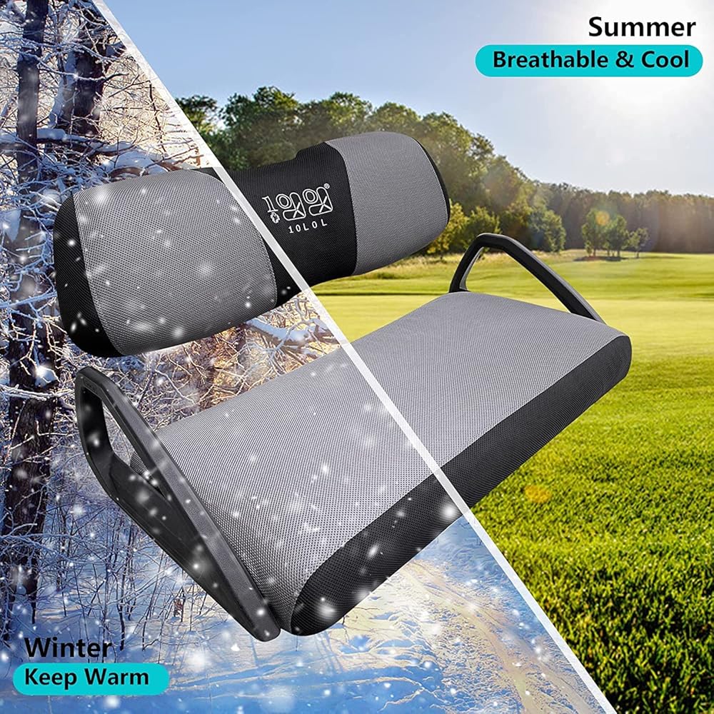 عالمية لجميع المواسم: أغطية مقاعد 10L0L لعربة الجولف مصنوعة من قماش ألياف البوليستر الشبكي، مما يمنحك شعورًا بالراحة والمتانة وسهل التنظيف وقابل للغسل في الغسالة. مسامي ودافئ، يبقيك منتعشًا في الصيف الحار ودافئًا في الشتاء البارد.