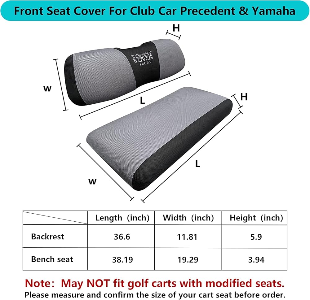 يناسب المركبات: مجموعة غطاء المقعد ذات حجم عالمي، مناسبة لوسادة المقعد الأمامي الأصلية لنادي السيارات ياماها. إذا تم زيادة سمك مقعدك وتوسيعه وترقيته، فيرجى قياس حجم مقعد عربة التسوق الخاصة بك لضمان ملاءمة الأغطية.