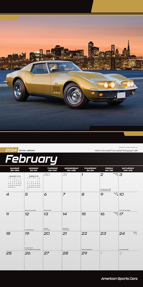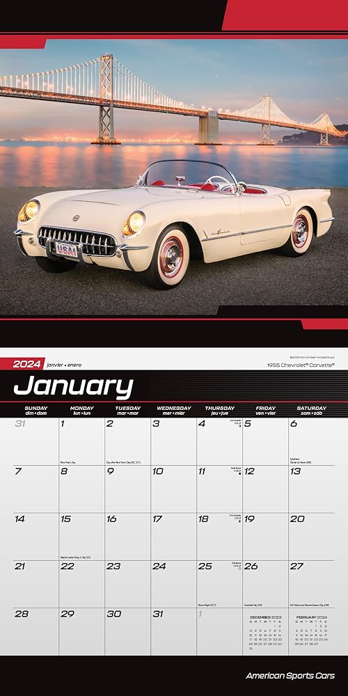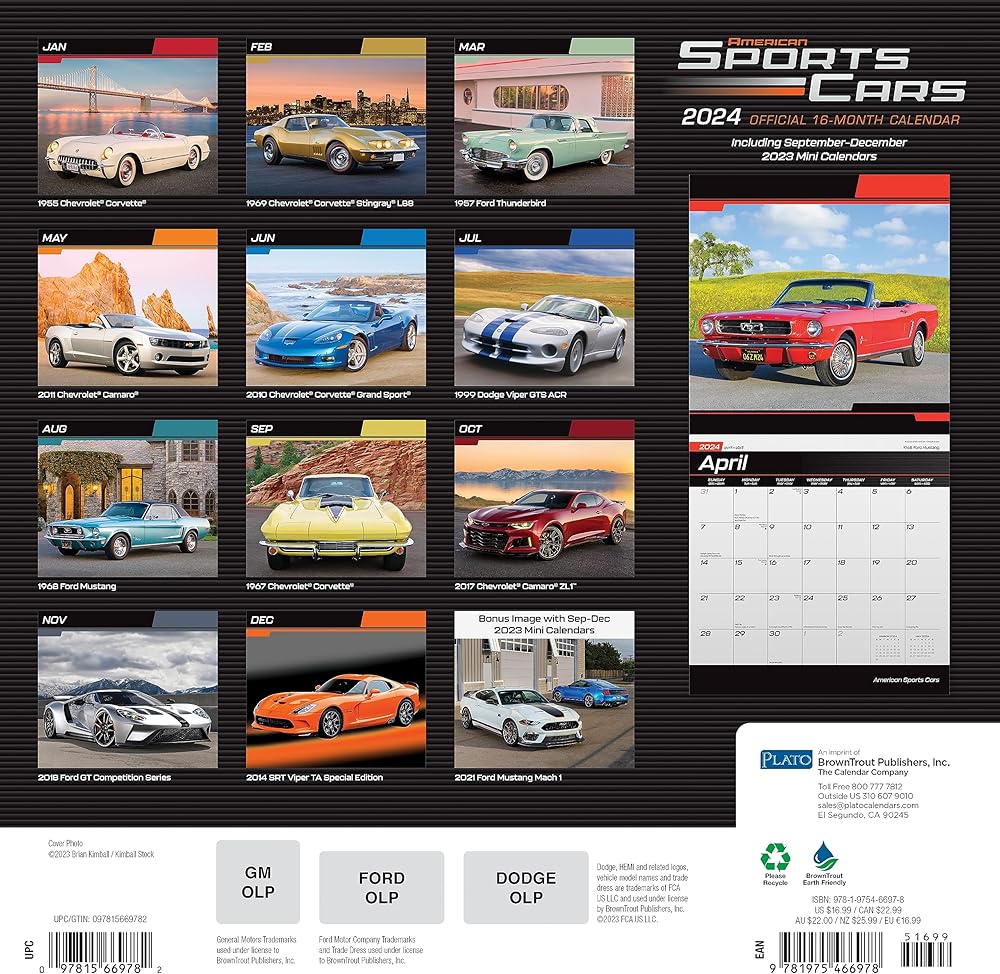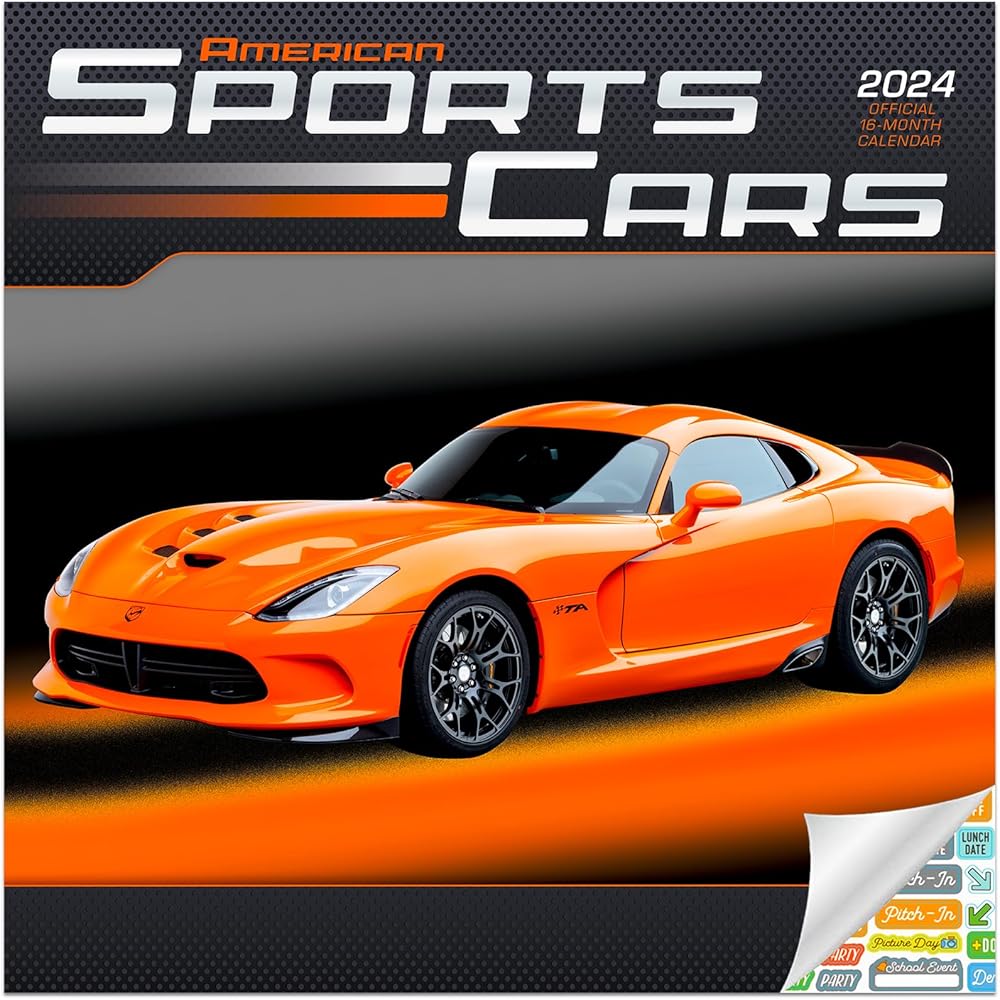 Shift gears and accelerate into 2024! The American Sports Cars calendar flaunts sleek speedsters that have carved asphalt legends, combining elegance with adrenaline. Deluxe American Sports Cars 2024 Wall Calendar Bundle with Separately Licensed Calendar Stickers.