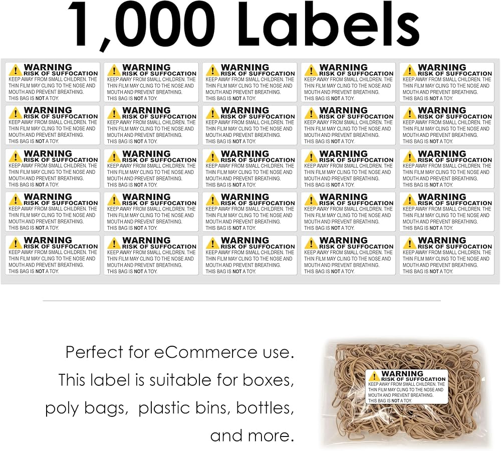 Professional: Bright and clear fonts on the label provide clear warnings for adults to take precautions. Labels give a professional appearance to your packaging and will also be providing necessary warnings at the same time. Use these labels when shipping your bagged products.
