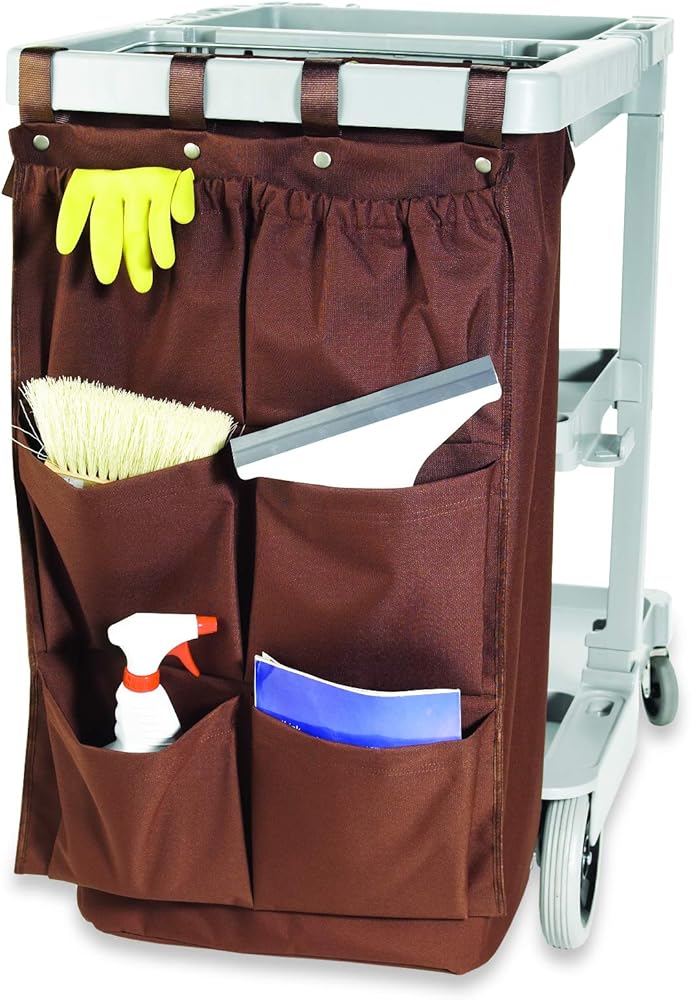 Our Wholesale Hotel Products 9-Pocket Housekeeping Cart Organizer is designed to increase productivity by keeping a housekeeping or janitor cart organized. One of the most effective cart accessories for the service industry. Heavy-duty fabric forms nine-pockets with enough storage for many items typically needed on a housekeeping cart.