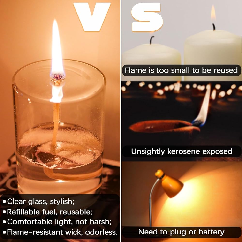 【OIL CANDLE INSTALLATION IS EASY】Simply fit the wick, fill it with combustion, and light it to get this oil lamp started on its way.