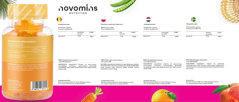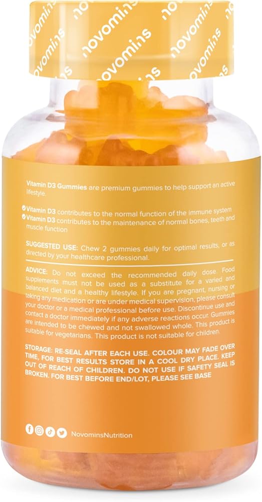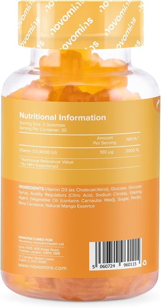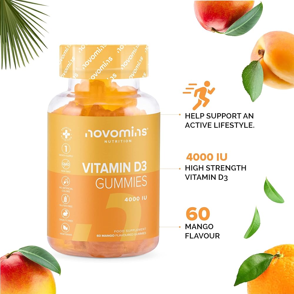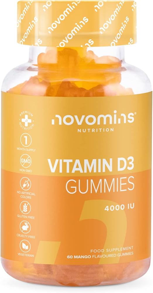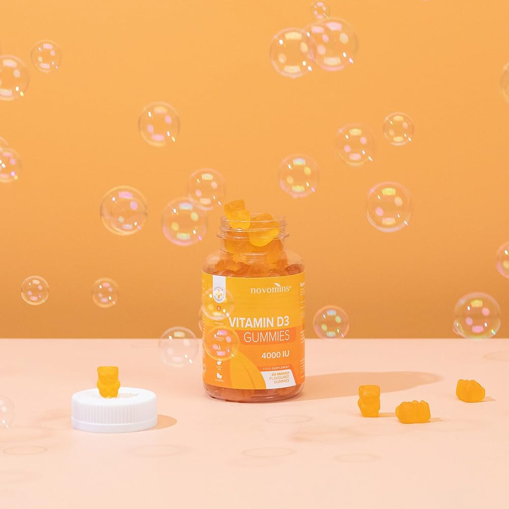 صمغ فيتامين د من نوفومين - مكمل حلوى 4000 وحدة دولية - نباتي، خالي من الغلوتين وغير معدل وراثيًا - لصحة العظام والعضلات والأسنان والجهاز المناعي - للبالغين والرجال والنساء