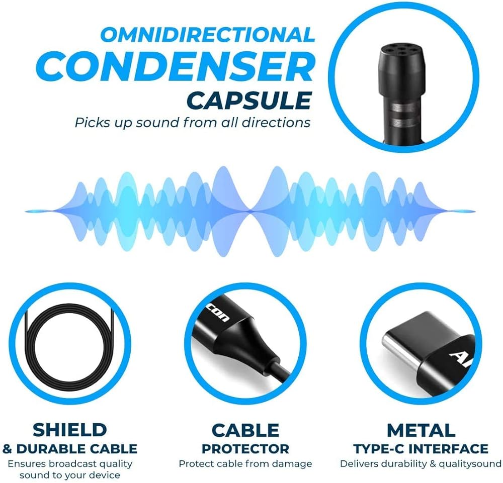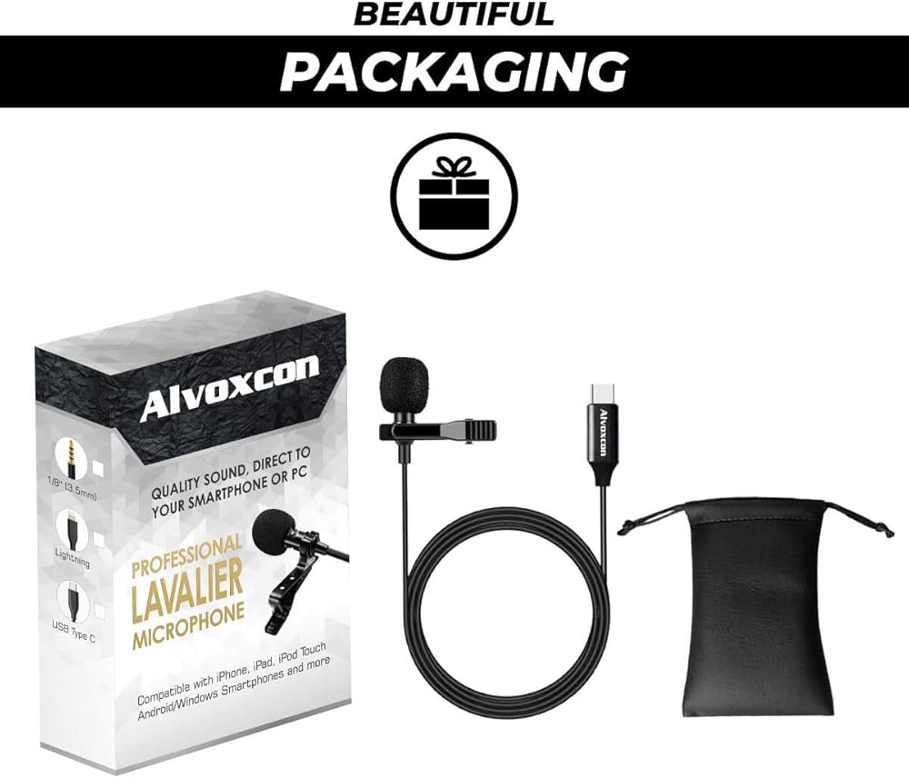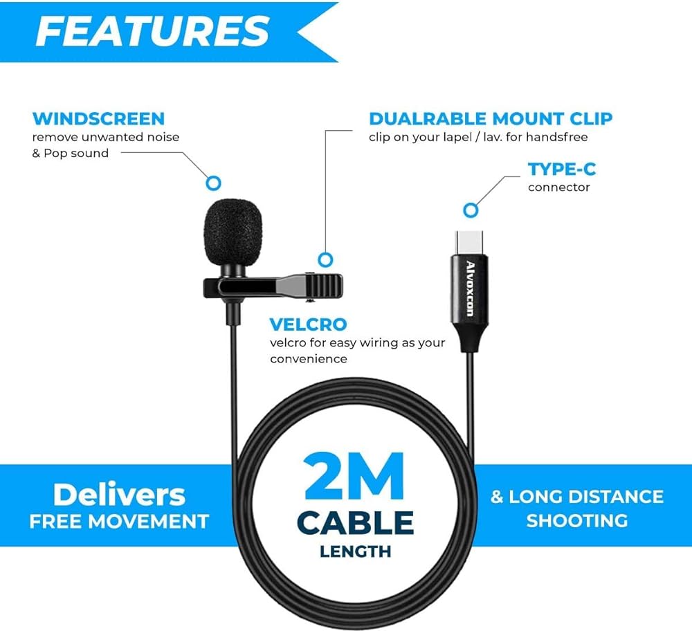 Alvoxcon Lavalier Lapel Microphone, tie Clip mic for Android Smartphone, Tablet with USB Type C Interface for Recording YouTube, Vlog, TikTok, Conference, handsfree with Easy Clip on System
