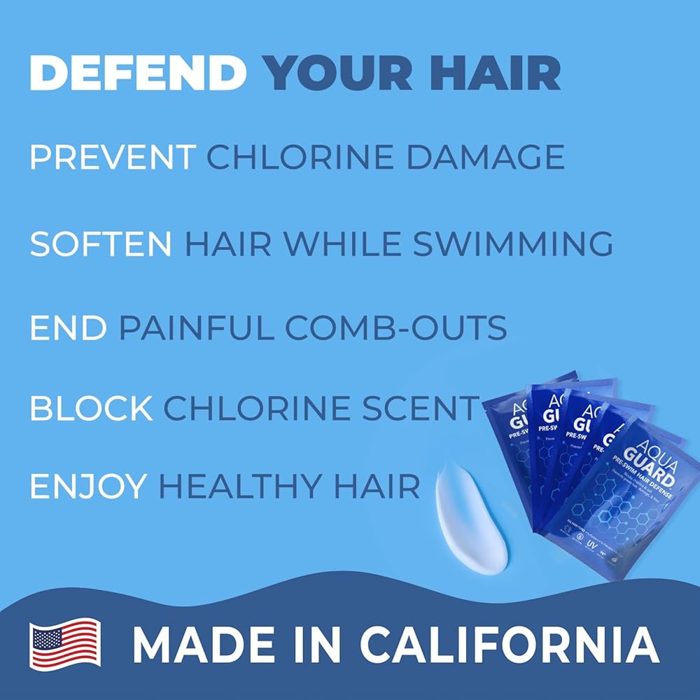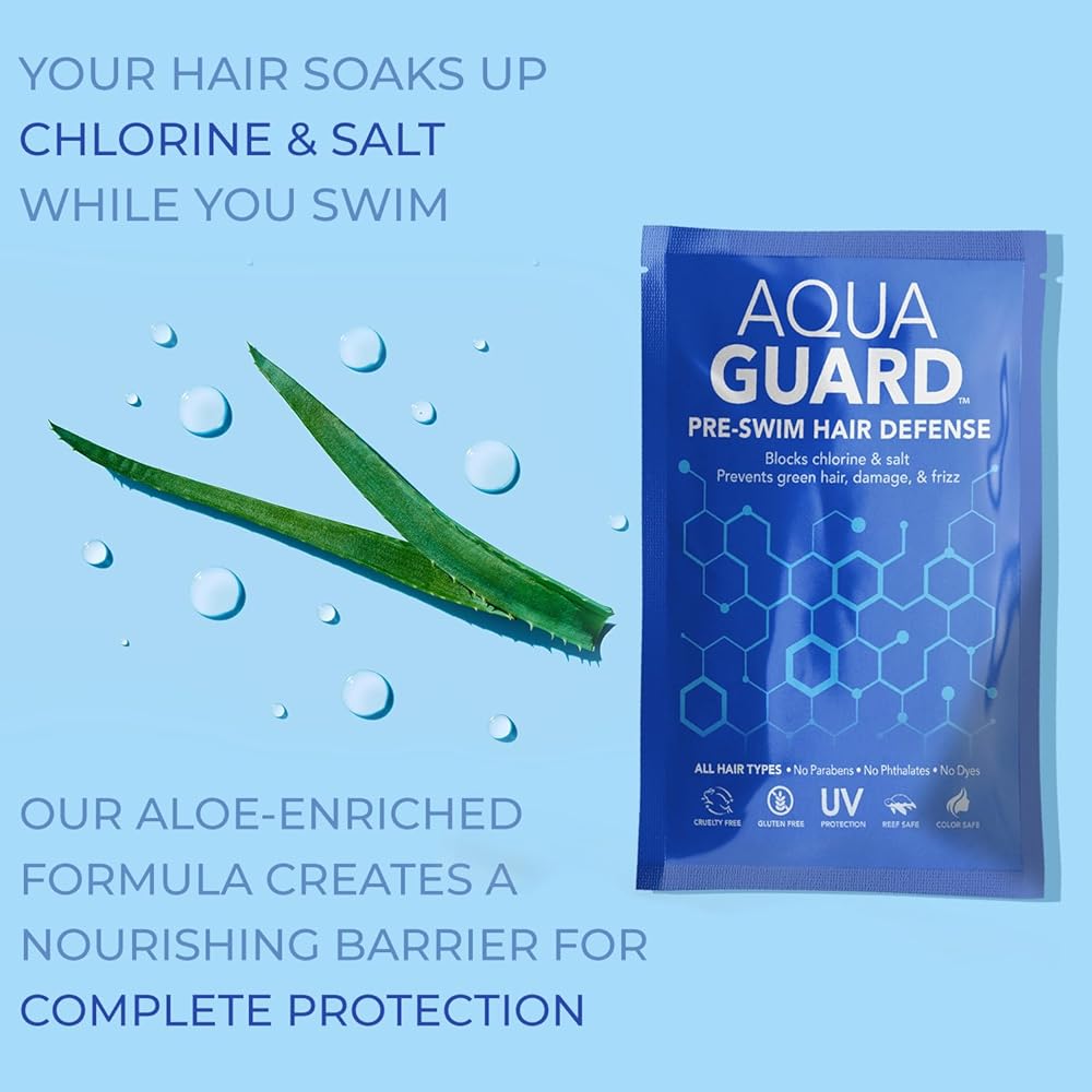 AquaGuard الدفاع عن الشعر قبل السباحة | يمنع تلف الكلور + ينعم الشعر أثناء السباحة | صنع في كاليفورنيا | لون آمن، يترك الشعر برائحة رائعة | حقيبة سفر (عبوة من 10 قطع)