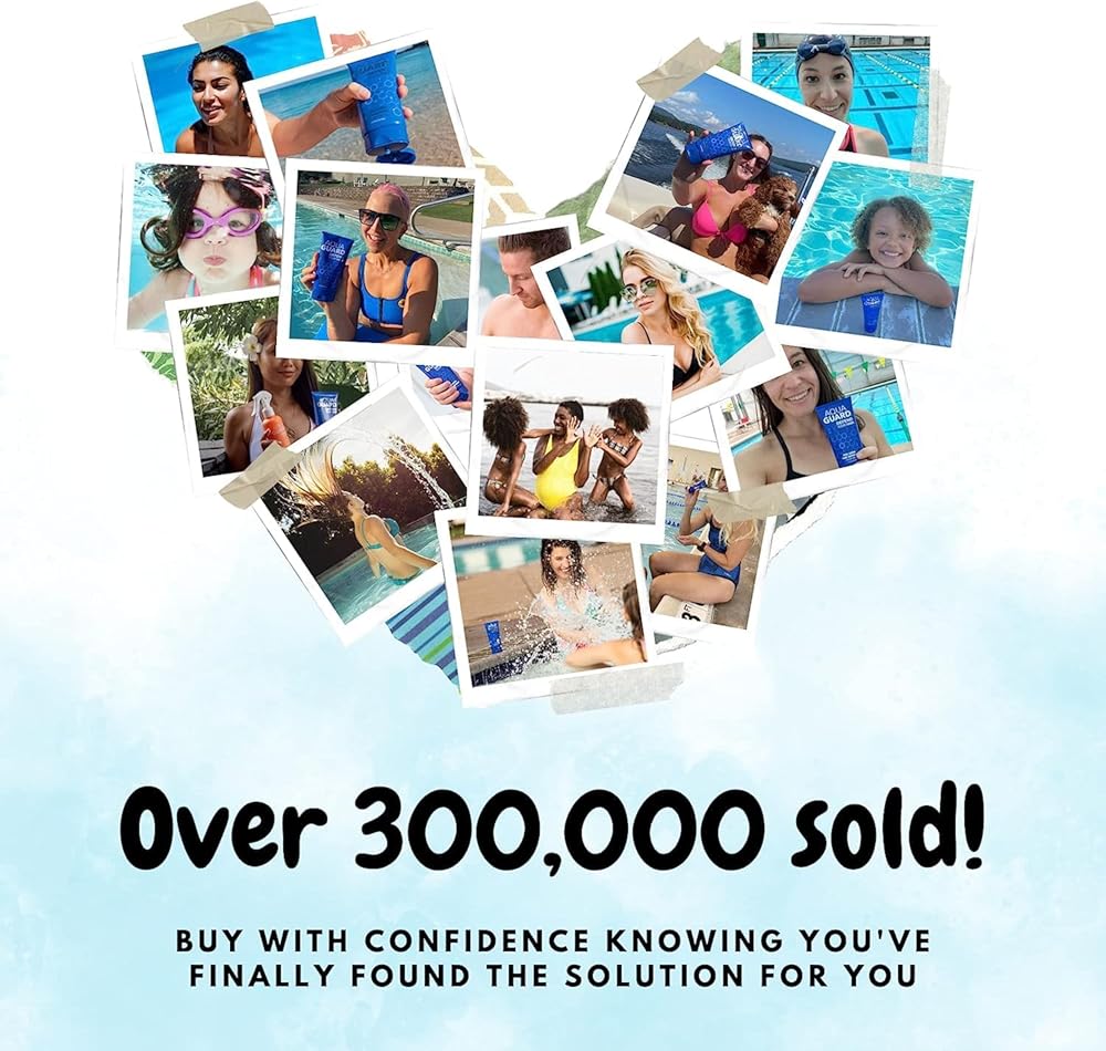 How to Use: Using AquaGuard is easy! Simply dampen your hair before swimming, and apply a generous amount of pre-swim hair defense- paying special attention to ends. Allow 3-5 minutes for the product to absorb completely into to the hair.