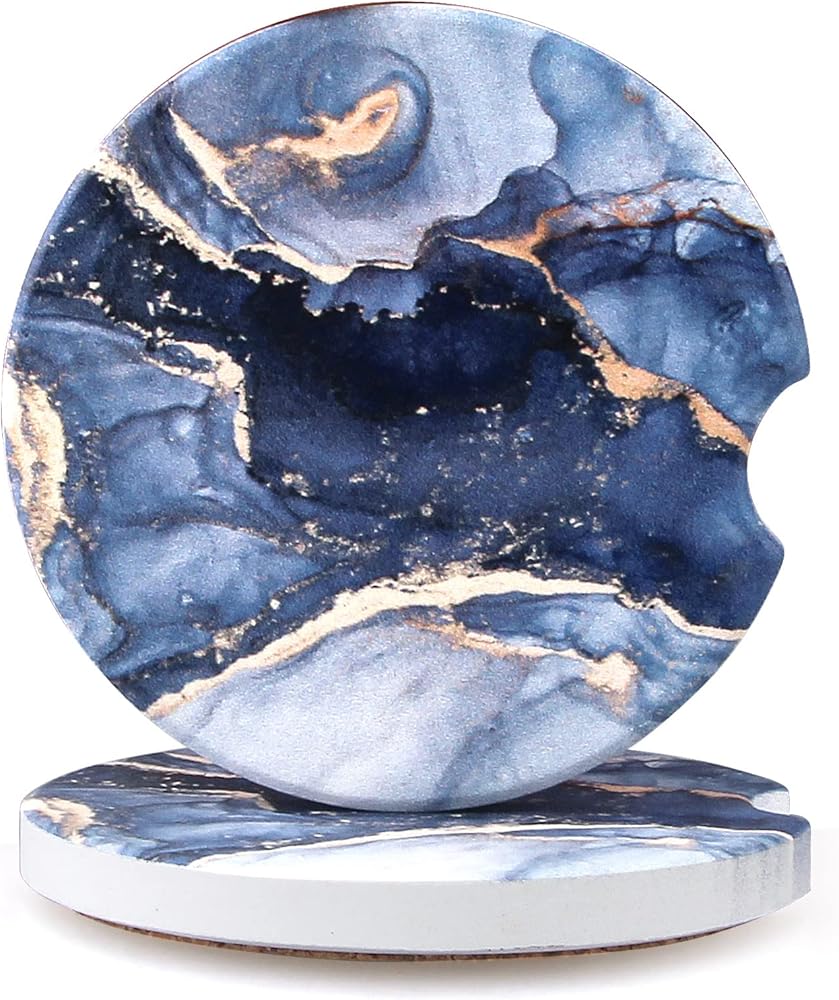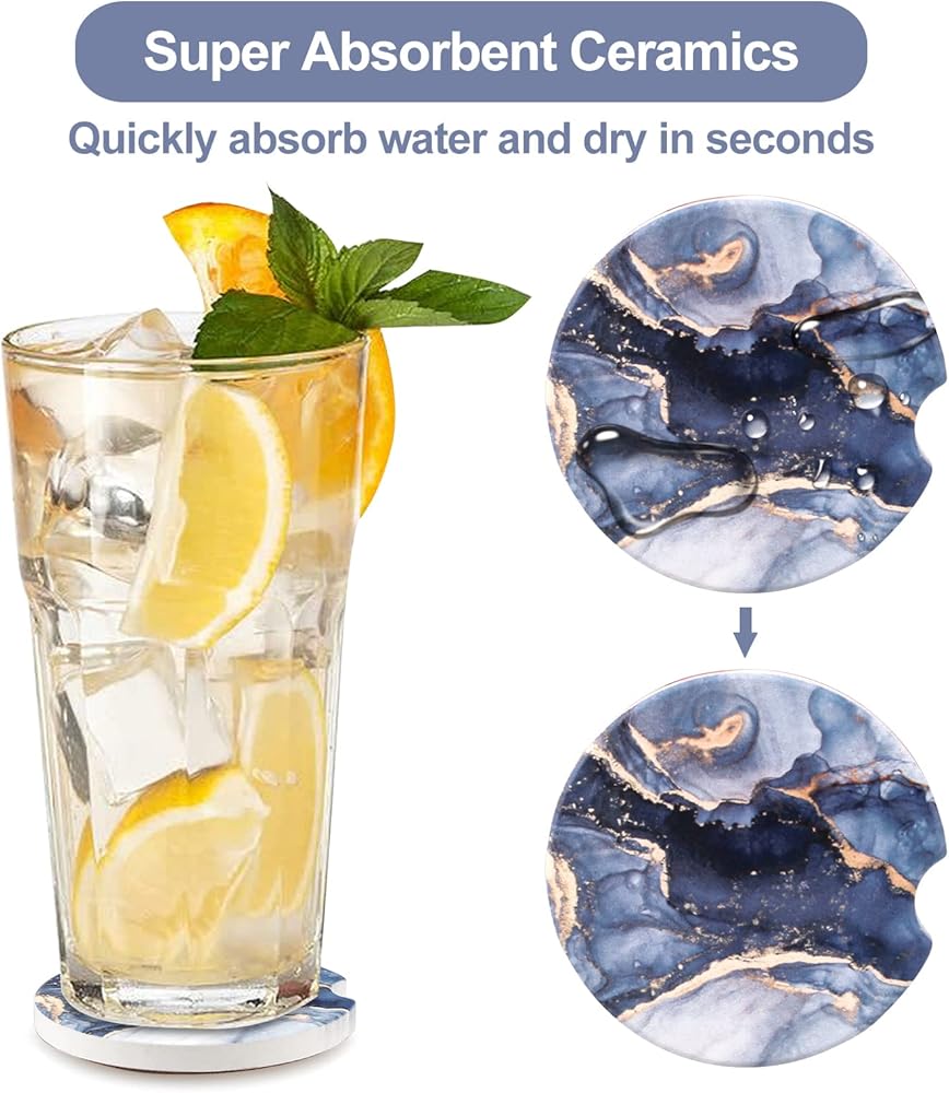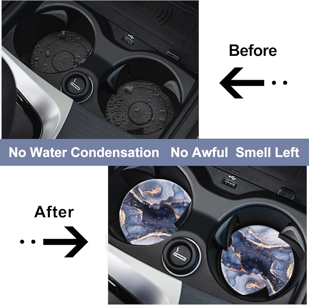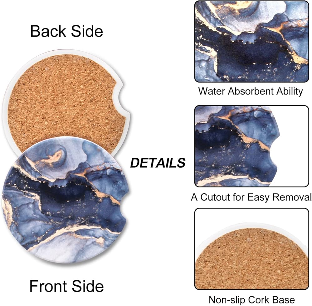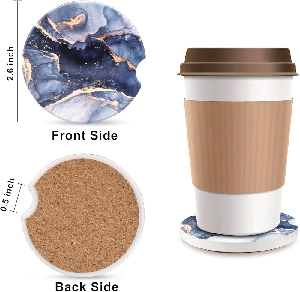 قواعد أكواب حامل أكواب السيارة مكونة من قطعتين من قواعد الأكواب الزرقاء اللطيفة للنساء والرجال، قواعد سيارة من السيراميك الماص مع فتحة إصبع لسهولة الإزالة، قاعدة مشروبات عالمية مضادة للانزلاق