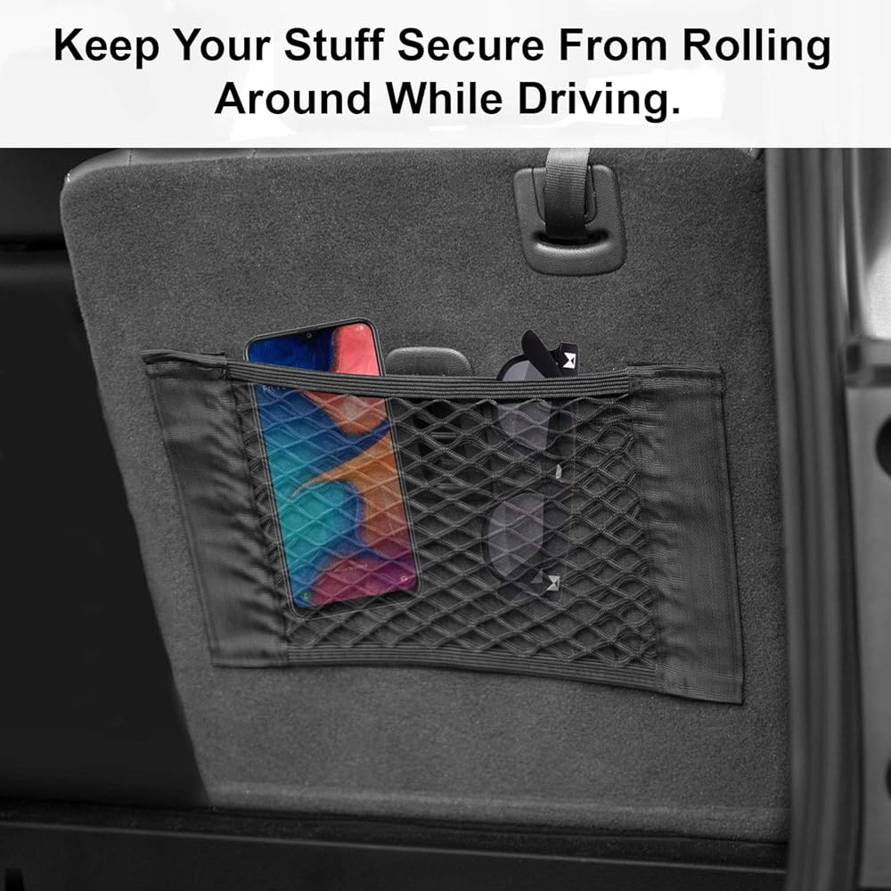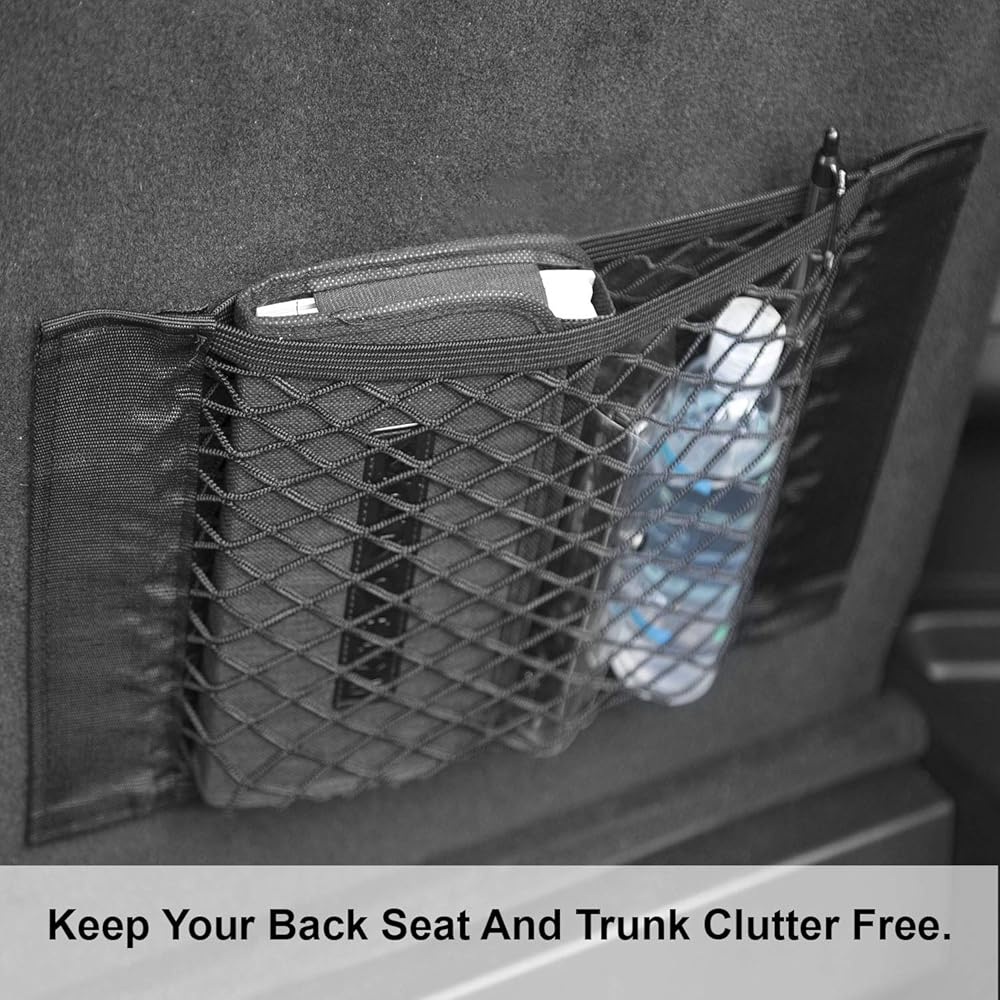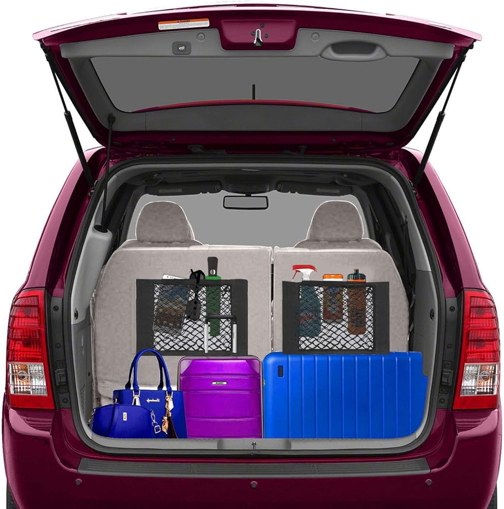منظم جيب شبكي لتخزين السيارات من lebogner، عبوتان من أكياس تخزين البضائع الشبكية، ملصق حائط جانبي شبكي بنجي، عصا على حقيبة سلسلة لصندوق السيارة، المقعد الخلفي، حقائب السفر، جيب شبكي منظم مرن