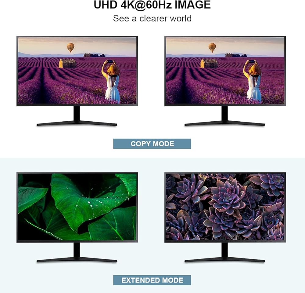 【متعة بصرية فائقة الوضوح】يدعم المحول دقة إخراج تبلغ 4K@60 هرتز، والتي يمكن أن تساعدك في الحصول على وليمة بصرية. تذكير: فقط إذا كان جهازك يدعم دقة 4K@60 هرتز، فيمكنك الاستمتاع بدقة 4K@60 هرتز.