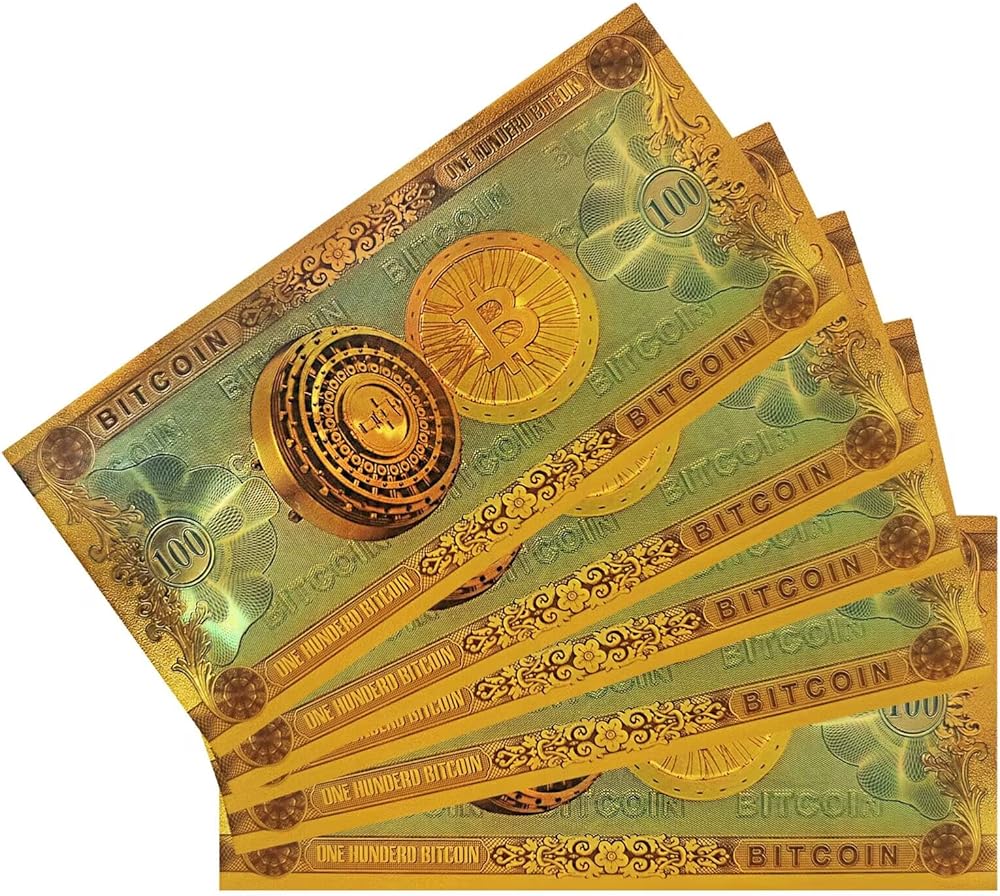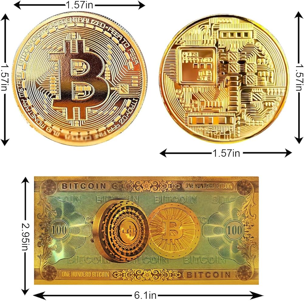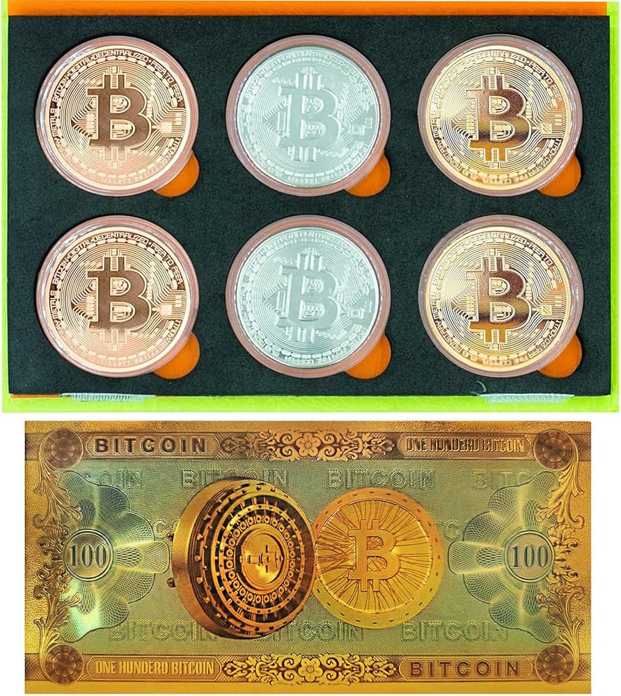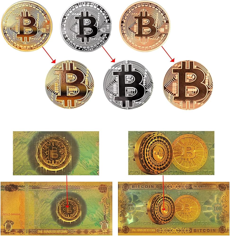 مجموعة عملات البيتكوين القابلة للتجميع، 6 قطع من عملة البيتكوين المادية المشفرة مع حافظة واقية قابلة للتجميع وقطعة واحدة من الأوراق النقدية التذكارية لمجموعة الهدايا