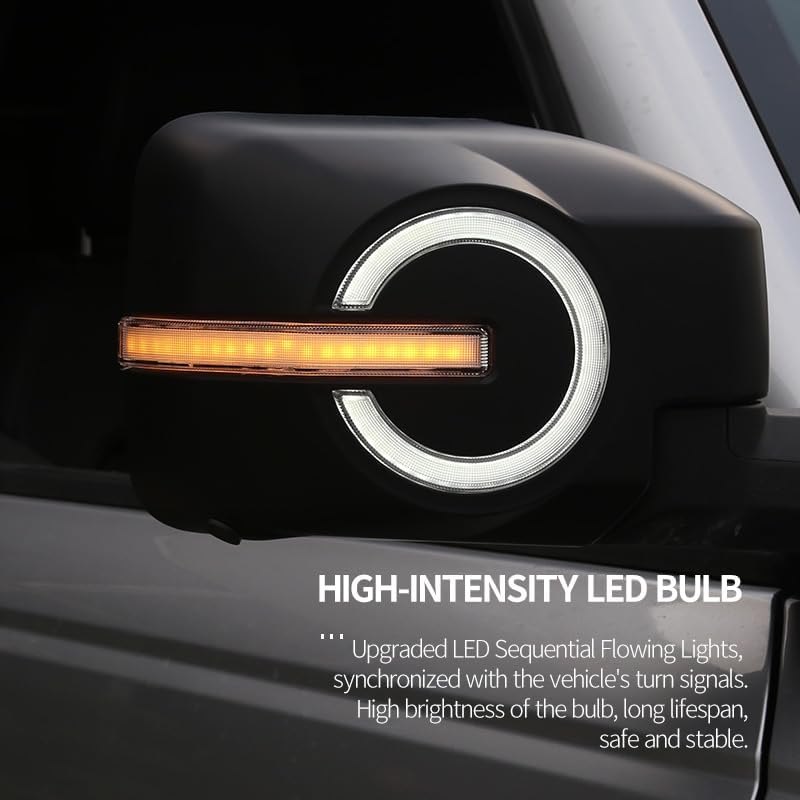 الملاءمة: غطاء مرآة الرؤية الخلفية هذا متوافق مع موديلات برونكو 2021، 2022، 2023 2024، كل من 4 أبواب وبابين.