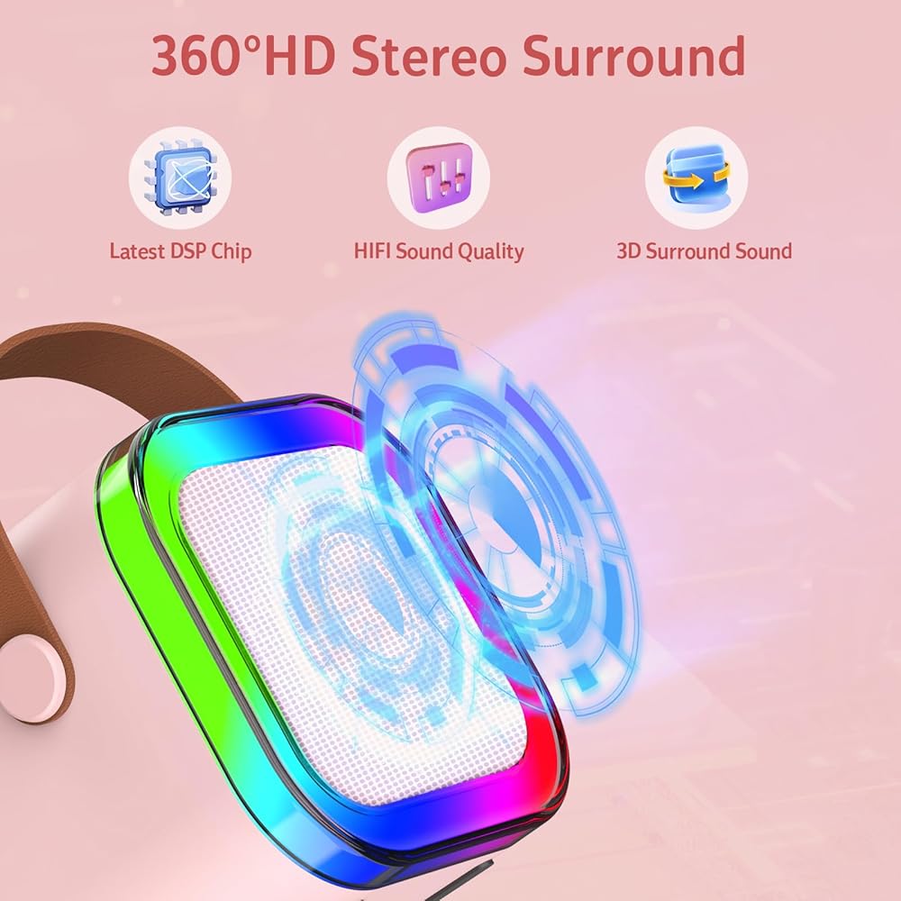 • ♬ 【آلة كاريوكي للأطفال متعددة الوظائف للفتيات】تحتوي آلة الكاريوكي الصغيرة على أضواء LED ملونة. تتراقص أضواء LED الموجودة على الجزء الخارجي من جهاز الاستريو على إيقاع الموسيقى، مما يخلق جوًا ممتعًا وممتعًا. تعتبر آلة الكاريوكي بلوتوث للأطفال مثالية للغناء والكاريوكي العائلي وصغيرة بما يكفي لتأخذها معك أثناء السفر وفي رحلات التخييم العائلية.