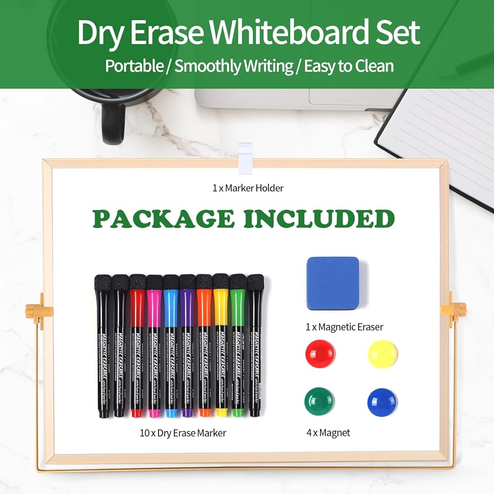 • 💼حجم كبير وعبوة قيمة - مجموعة لوح المسح الجاف على الوجهين مقاس 12 × 16 بوصة تأتي مع 8 قطع من أقلام المسح الجافة المغناطيسية (تتضمن 6 ألوان)، 4 قطع قطعة مغناطيسية، 1 قطعة ممحاة جافة، 1 قطعة حامل قلم التحديد. يمكنك وضع هذه السبورة البيضاء كبيرة الحجم على سطح المكتب، أو طاولة الدراسة، أو طاولة السرير، أو منصة الصف، أو طاولة المطبخ، وما إلى ذلك. مثالية للعرض أو التذكير
