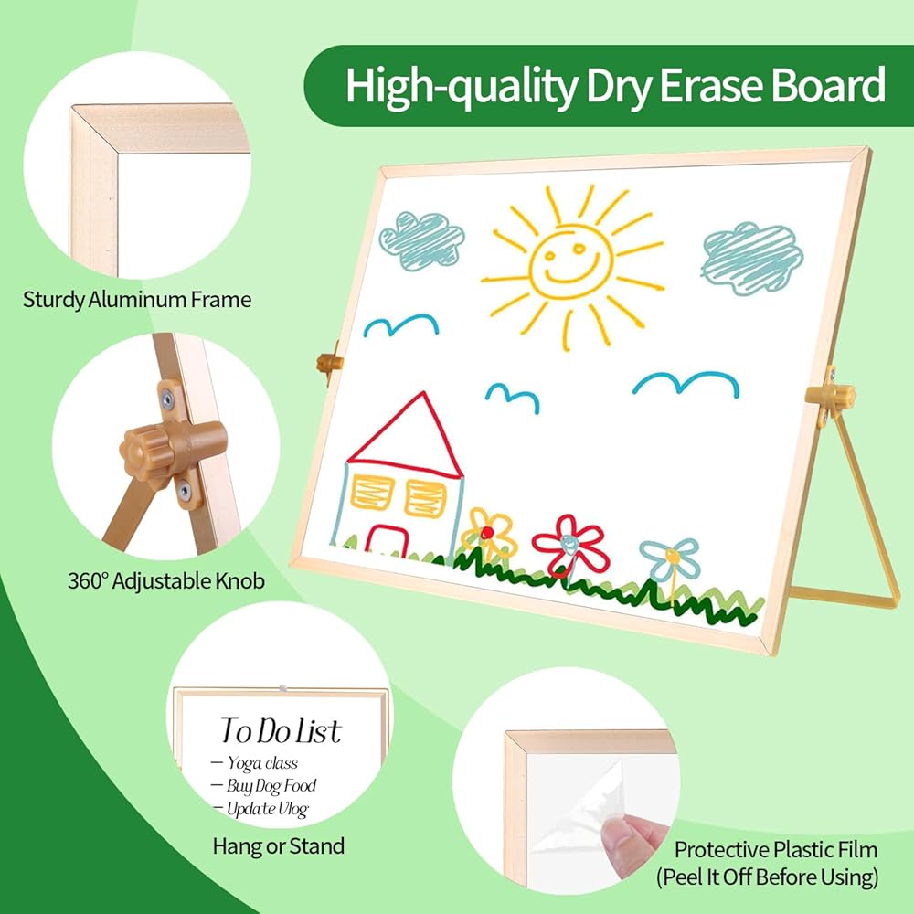• 🏫كتابة سلسة وسهلة التنظيف - كلا سطحي السبورة البيضاء المكتبية مصنوعان من مواد ناعمة ومتينة، والتي يسهل الكتابة عليها ومسحها بدون بقع. إنها لوحة رائعة للمسح الجاف لمهارات الرسم والحساب والكتابة وما إلى ذلك. يرجى إزالة الطبقة الواقية قبل الاستخدام.