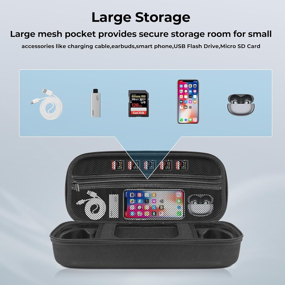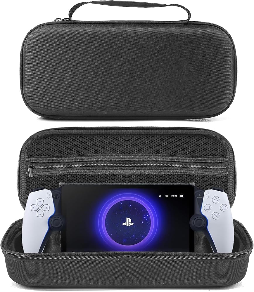 【تصميم واقي الشاشة وتخزين كبير】واقي شاشة مدمج، يحمي بوابة PlayStation من الخدوش والصدمات والسقوط. يوفر الجيب الشبكي الداخلي مساحة تخزين آمنة للملحقات الصغيرة مثل كابل الشحن، ومحول الطاقة، والهواتف الذكية، وسماعات الأذن، وفلاش USB محرك الأقراص، بطاقة SD الصغيرة، إلخ.