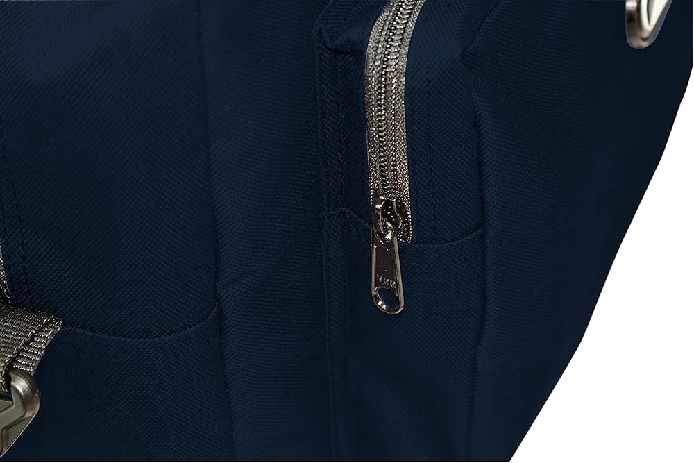 - فتحة سحاب مزدوجة للمقصورة الرئيسية. جيبان داخليان بسحاب مقاس 6 1/2 بوصة × 4 بوصة