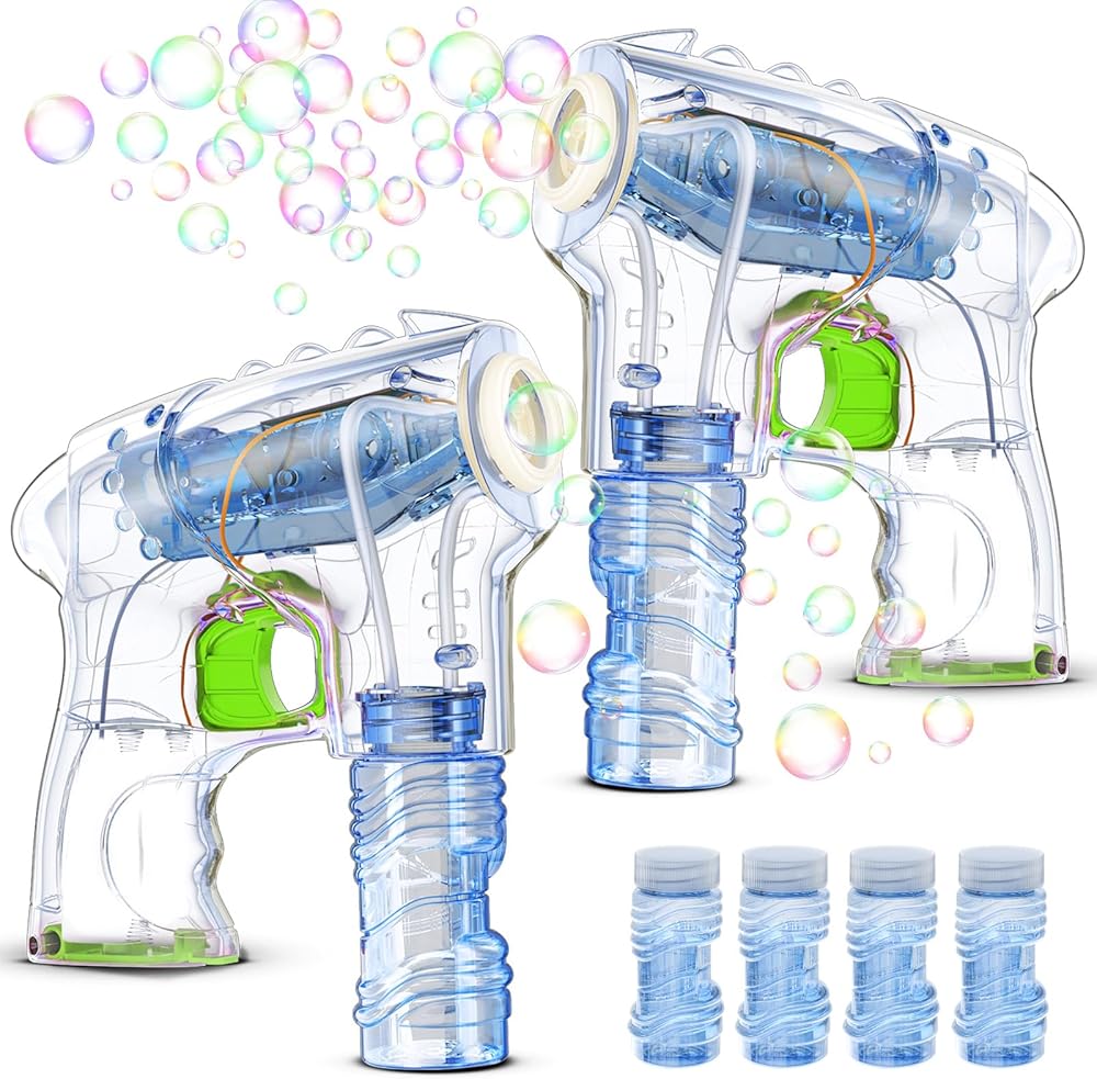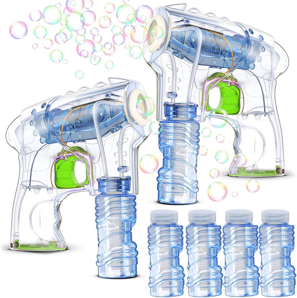 Kid Odyssey 2 Pack Bubble Gun with 4 Refill Solution and 3 Colorful LED Light, Bubble Machine for Kids, Bubble Maker for Party Favors, Birthday Gift, Indoor Outdoor Toys for Toddlers