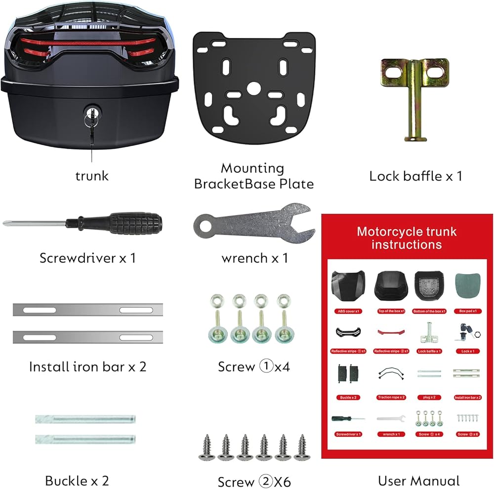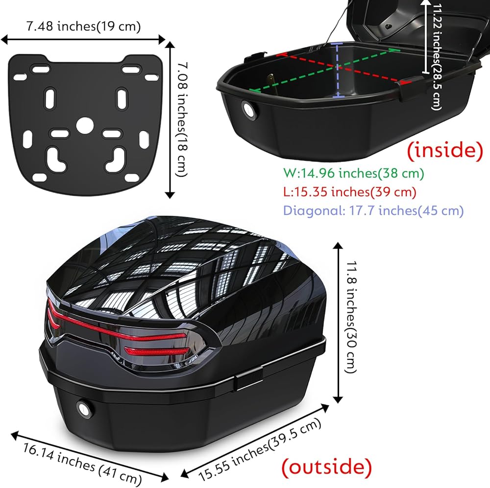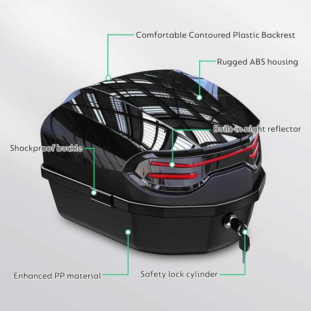 [Motorcycle Top Box] - This 35L motorcycle top case made of high quality plastic material, can provides a safe and efficient storage space, stainless steel locks prevent the loss of important items such as your helmet, gloves, documents, etc.